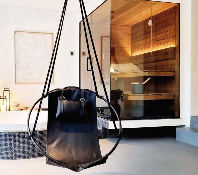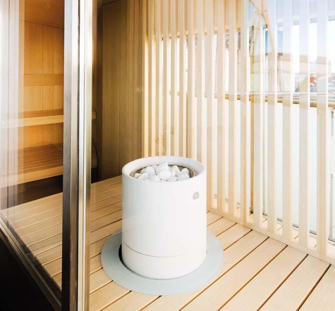 01 • Aus hochwertigem Pappelholz gefer tigt ist die ergonomische Rückenlehne die optimale Rückenstütze für entspanntes und bequemes Sitzen und Liegen in der Sauna. www.kugel-sauna.de • 02 • Einen Frischekick verspricht der Schwalleimer aus robustem Lärchenholz mit Haltebügel aus Edelstahl, der innen sowie außen wasserundurchlässig beschichtet ist. www.eliga.com • 03 • Nie war es so bequem in der Sauna: Mit dem „Saunasofa-Set“ aus gepolsterten Saunaauflage und dem passenden Kopfkissen fühlt man sich in der Sauna wie auf Wolken. badesofa.de • 04 • Dank ihrer abgerundeten Ecken wirkt die Kopfstütze von Corso elegant und fügt sich perfekt in jede Kabine ein. www.wellnessundgarten.de • 05 • Der holzbefeuerte Saunaofen „Hive Flow“ zeichnet sich durch seine Effizienz und Umweltfreundlichkeit aus huum.de 06 • 1001 Nacht: Die Designleuchte „Clara“ mit Lampenabdeckung aus gewölbtem Buchenholz wirkt orientalisch und bezaubert mit ihren in Holz gefrästen Ornamenten. saunashop.klafs.de • 07 • Den „Pure -Bademantel gibt es wahlweise in den Farben sand, graphite und denim. www.ambiendo.de • 08 • Entspannung in einem Designer-Spa, ohne das Zuhause zu verlassen. Möglich macht es Handtuchhalter „Uliana“ aus massivem Teakholz mit natürlichem Finish. kavehome com • 09 • Dieser Aufgusseimer aus Kiefernholz mit Kunststoff-Einsatz fasst circa 5 Liter. www.eliga.com • 10 • Genau wie ein Saunakübel, gehört auch die passende Saunakelle zur Grundausstattung des anspruchsvollen Saunagängers: hier die Serie „Brilliant", die moderne italienische Akzente mit finnischer Tradition vereint www.schlenker-gmbh de • 11 • „Alto“ ist ein vierteiliges Handtuch-Set in der Farbe Steingrau www.made.com • 12 • Massagehandschuhe und Massagebäder können die Durchblutung anregen und eine zarte Haut fördern. Beide Produkte bestehen aus dem hochwertigen Naturmaterial aunashop.klafs.de • 13 • Die „2-in-1 Lounge“ ist zweifach nutzbar: ls Ecklösung oder in eine geteilte Variante mit zwei Longchairs. In der Longchair Variante werden die beiden Liegeflächen durch ein Anlehnelement getrennt. www.ikono-shop.de