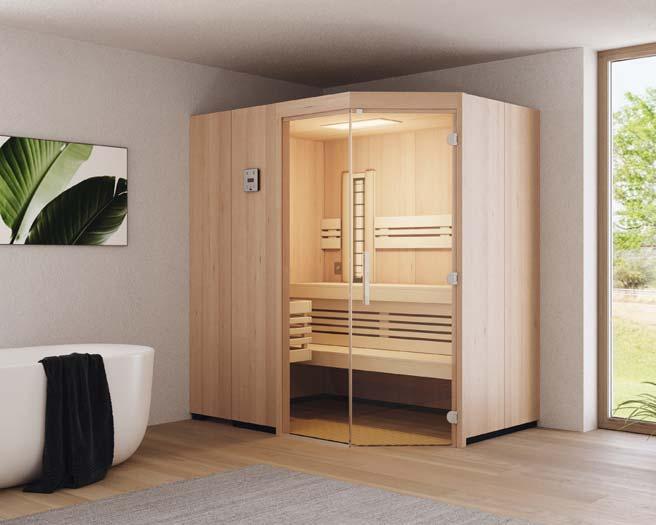 Technische Innovationen wie die neuesten Infrarotsaunen (ab Seite 48), fortschrittliche Saunaöfen (ab Seite 40) und luxuriöse Dampfbäder (ab Seite 54) eröffnen vielfältige Möglichkeiten, den Alltag mit einem Hauch von Wellness zu bereichern. Dabei steht immer eines im Vordergrund: Design à la carte, das genau auf die individuellen Wünsche und Bedürfnisse zugeschnitten ist.