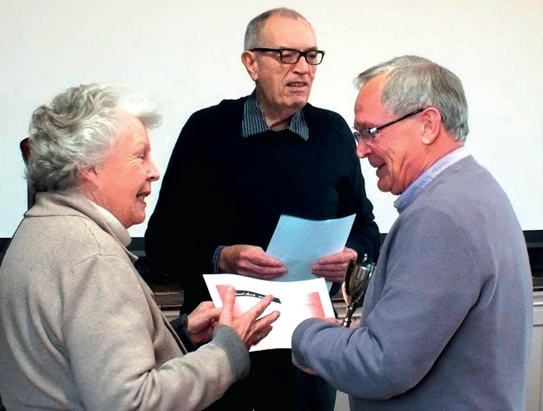 Lady Caroline Marshall and Terry Collins presenting an award to Roger Billington.