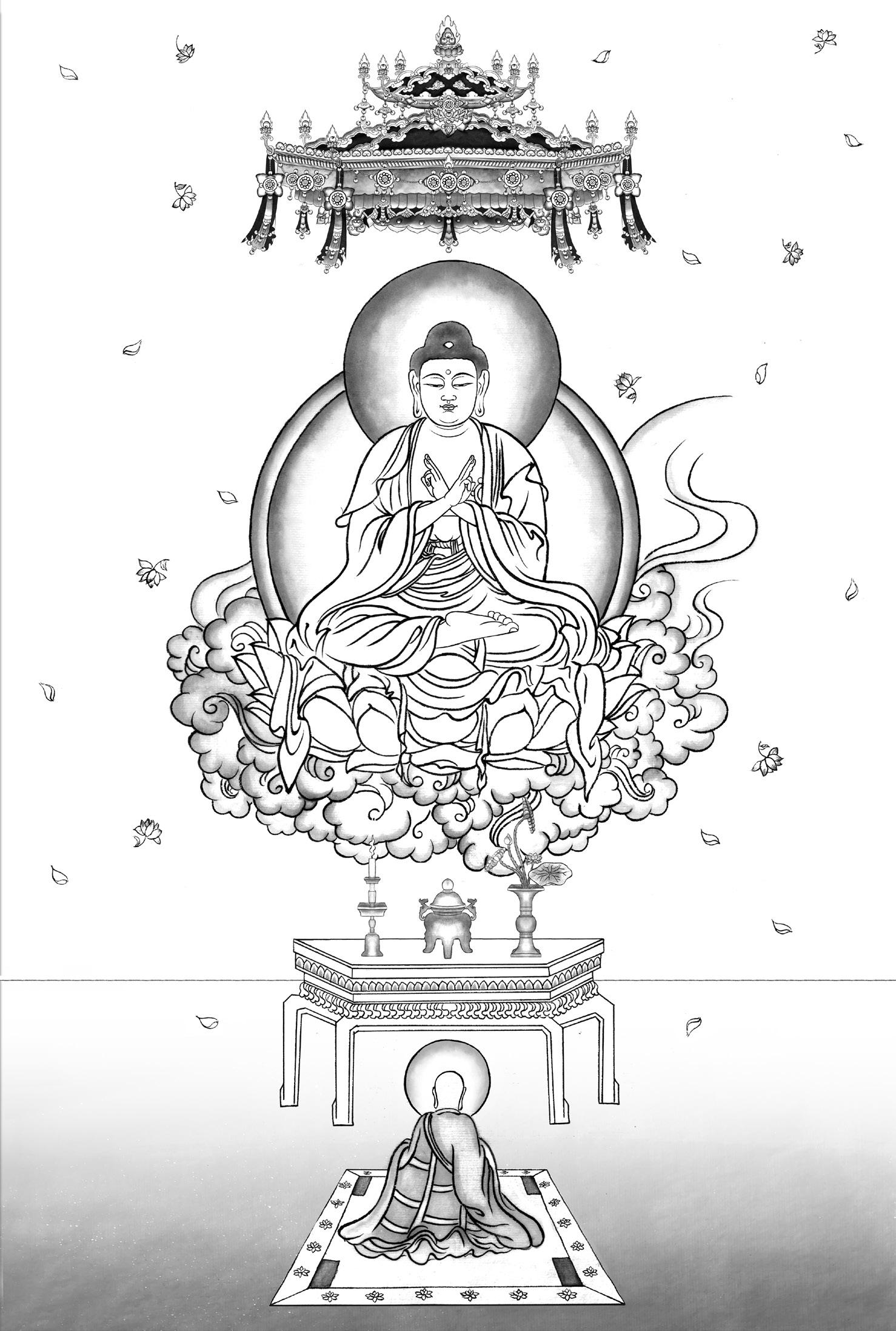 三 昧 水 懺 卷 上 6 容 颜 甚 奇 妙 。 光 明 照 十 方 。 róng yán shèn qí miào guāng míng zhào shí fāng 無 邊 佛 土 中 。 受 用 作 佛 事 。 wú biān fó tǔ zhōng shòu yòng zuò fó shì 緣 覺 聲 聞 衆 。 及 一 切 天 仙 。 yuán jué shēng wén zhòng jí yī qiè tiān xiān 普 熏 諸 衆 生 。 皆 發 菩 提 心 。 pǔ xūn zhū zhòng shēng jiē fā pú tí xīn 以 起 光 明 臺 。 過 於 無 邊 界 。 yǐ qǐ guāng míng tái guò yú wú biān jiè 供