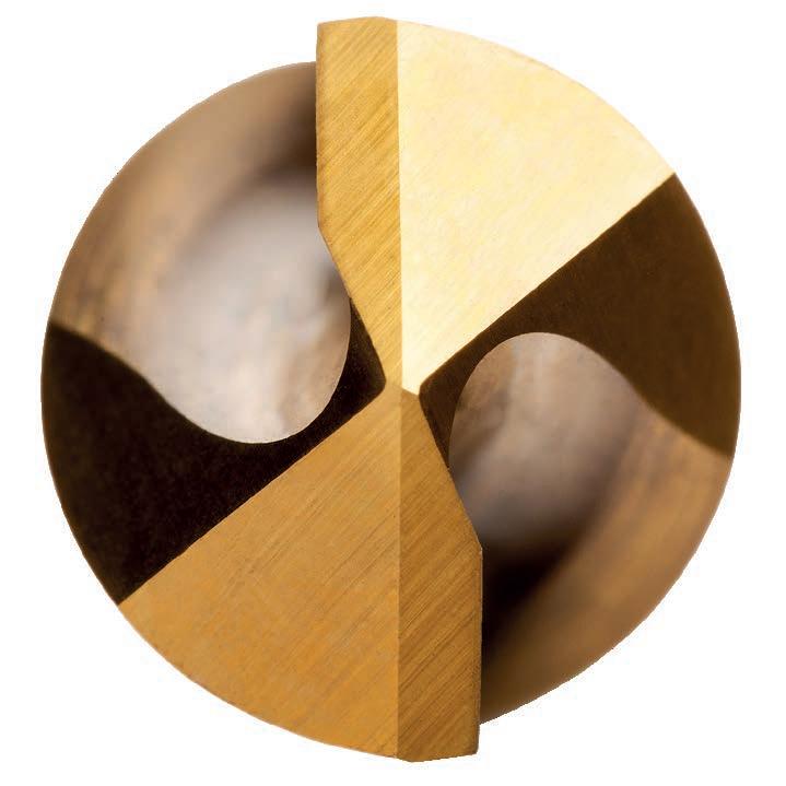 Titanium Nitride (TiN) tip coating on only the cutting action part of the drill.