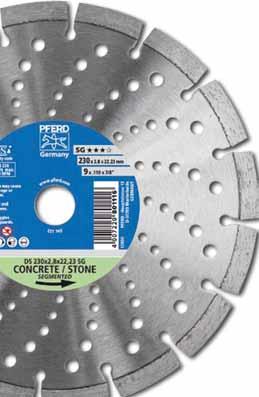 PFERD diamond cut-off wheels are manufactured in compliance with the highest quality and safety standards. They guarantee optimum cutting results and allow economic work on different materials, e.g. concrete, exposed aggregate concrete, clinker brick, hard stone, granite and other abrasive building materials. The product range offers the best tool for any application.