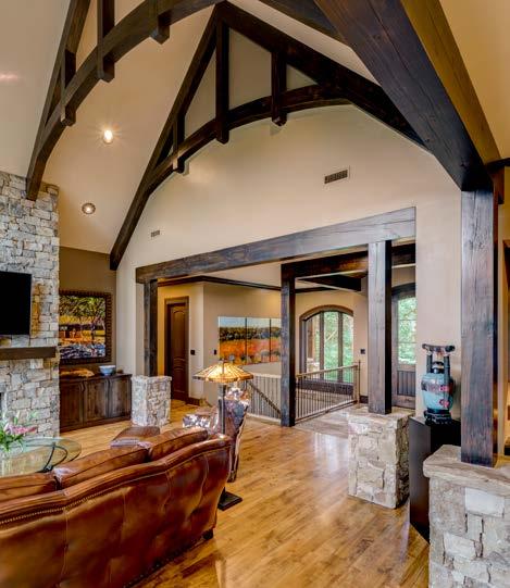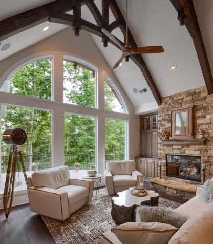 Featured on the cover of Carolina Home and Garden Magazine, the Rock House features a stunning exterior of intricate rock work. Inside, reclaimed bard wood beams, walls, and accents bring an antique feel to the home. Oversized windows allow the homeowners and their guests to enjoy the view from almost all living spaces. Downstairs, a full-service pub offers beer on tap, while the quadruple bunk room offers fun for young family members. Throughout, luxurious finishes create a retreat-like environment.