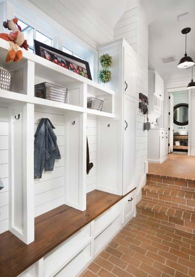 This Charleston inspired traditional home features the elegance of a historic structure seamlessly intertwined with the luxuries of bespoke craftsmanship. We worked with our clients to achieve their desired design aesthtic alongside fuctionality for their young family. Copper exterior lighting features, light blue porch ceilings, and slate tile on the porches contribute to the coastal feel, while a barrel ceiling in the Owner’s Retreat, brick herringbone throughout the mudroom, pantry, and laundry room, and a secret library door leading to a playroom contribute to the surprises around every corner of this custom masterpiece.