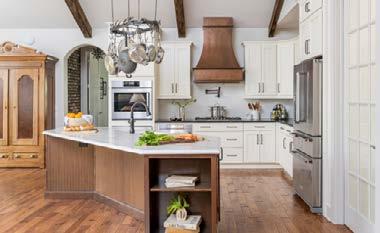 Built in a historic community, the Rocky Branch Cottage was designed to look and feel as though it was constructed a century ago. Central to our client’s goals for this home were historic design concepts, functionality, and age-in-place principles. A brick and rock exterior on this English Cottage style home helped to achieve the timeless design, alongside smooth stucco finish on the interior walls, arched entryways, brick accents walls, mantles crafted from a 108 year old oak tree that stood on the clients’ lot, and custom built emtryway doors specially designed to showcase the restored beveled glass inserts that once belonged in the client’s grandmother’s 1904 home. Age-in-place principles throughout will allow the clients to live in their dream home for many years to come.