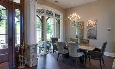 Located on a serene property, The Magnolia features a seamless blending of rustic elements alongside modern finishes. A custom-made double entry door leads into a grad flagstone foyer. Shiplap walls and exposed beams throughout the home lend a farmhouse feel, while an elegant Owner’s Retreat, bar and gameroom on the terrace level, and outdoor firepit with rock water feature ensure entertainment and relaxation for all.
