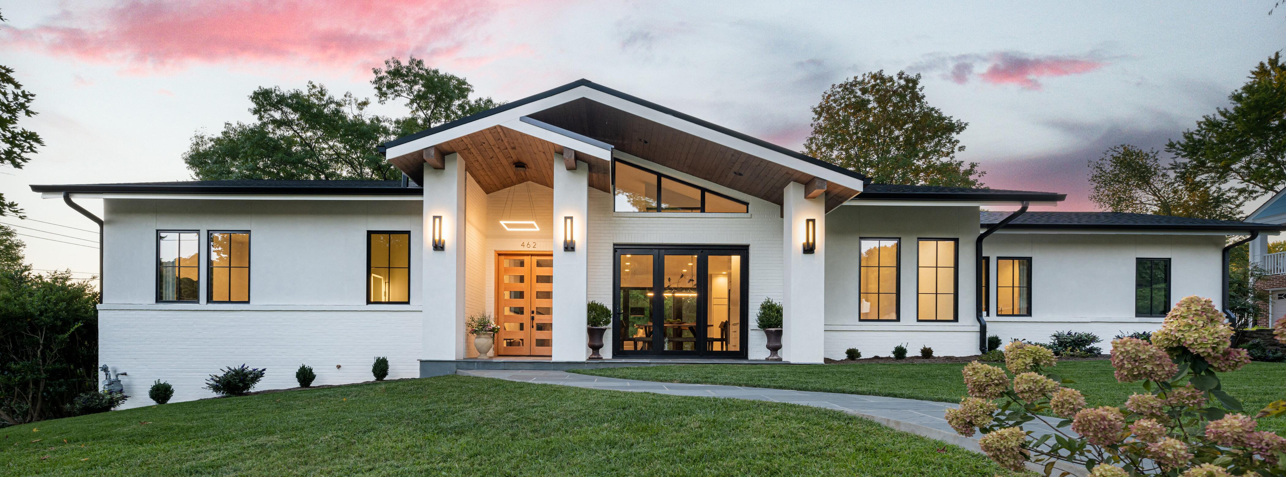 When our clients found a home on Kimberly Avenue for sale, they were delighted. However, as a heavily-dated one level ranch style, the property was far from our client’s dream. To make this home the space our clients needed, our renovations team took the home “down to the studs”, and removed the roof. With a completely new floor plan designed by Architect Diana Bolivar, the home was transformed into the contemporary, functional, and light-filled home of our clients’ dreams. Oversized windows and folding glass doors allow the home to be permeated by sunlight, and surrounding nature. Sleek, elegant selections combine modern lines with transitional aesthetics, delivering a uniquely warm take on modern style, befitting for a location in the heart of Asheville’s rich history.