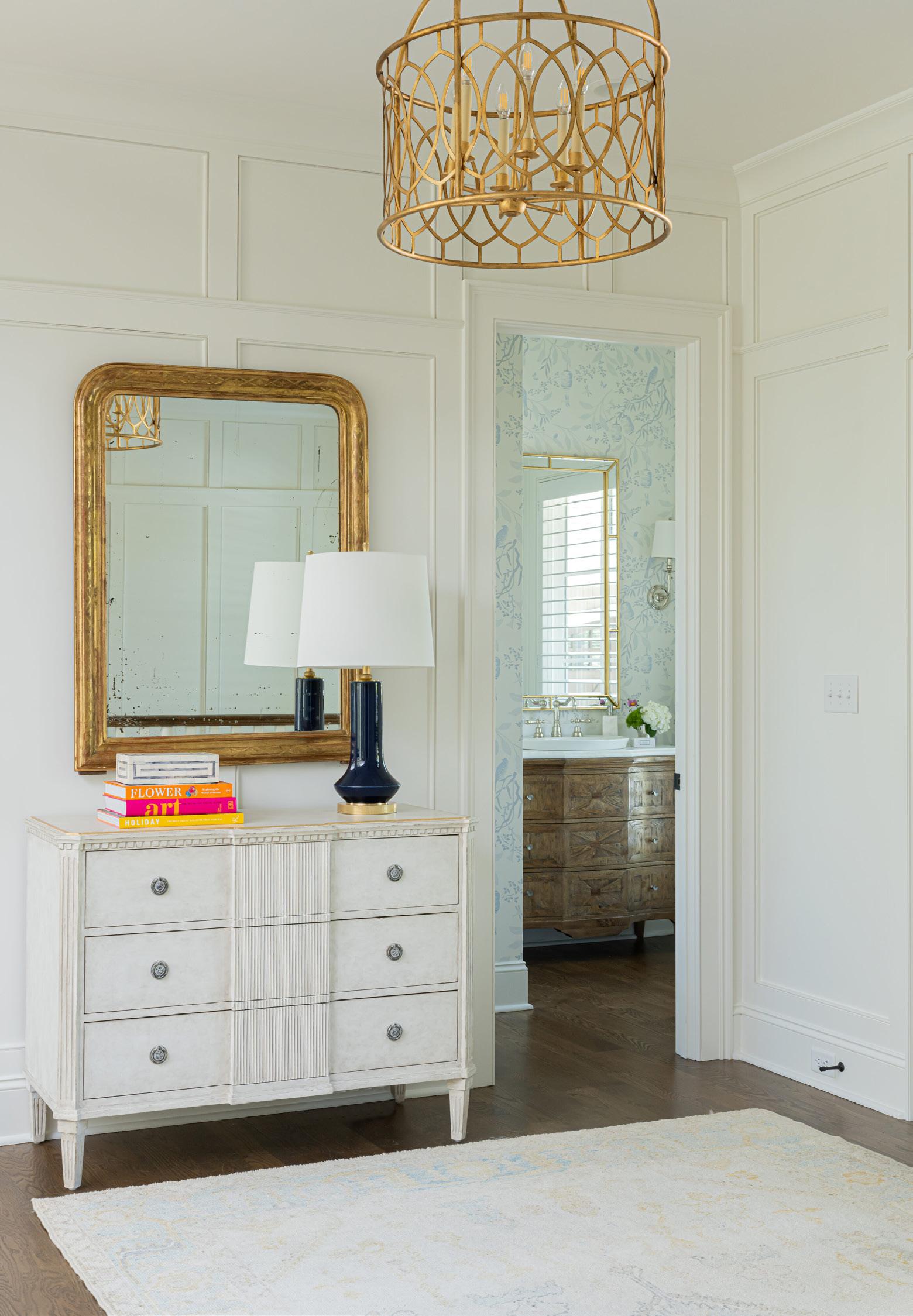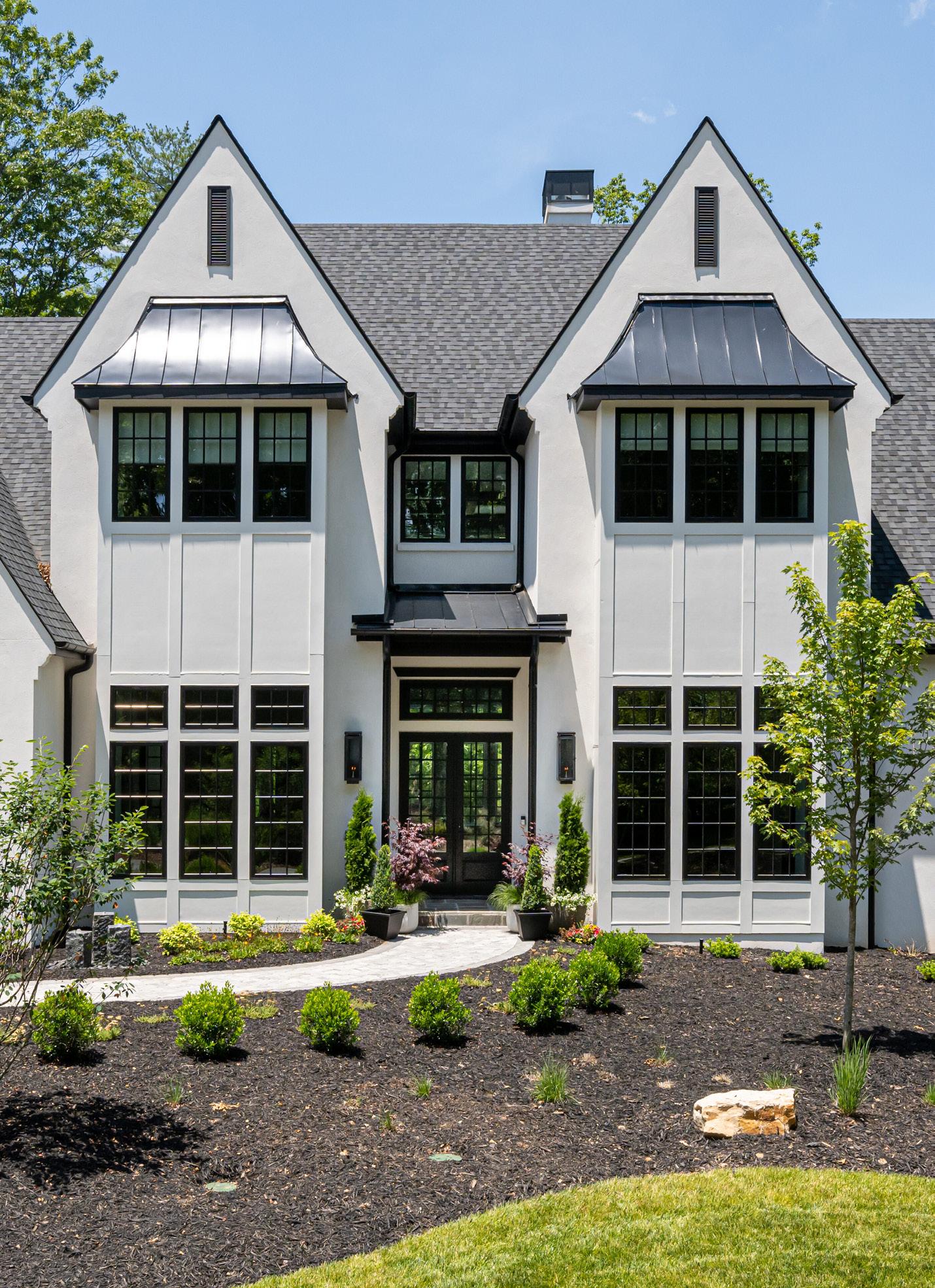 The home’s situation on the lot and casement window placements ensure views are visible from nearly every room. A 20-foot pocketing door opens the living space to a meticulously designed outdoor living space featuring a large patio, pool, and pool/guest house with bar. Interior selections were carefully chosen to achieve a juxtaposition of historic and modern influence. Dual garages and a white exterior create a symmetrical nod to the farmhouse style.