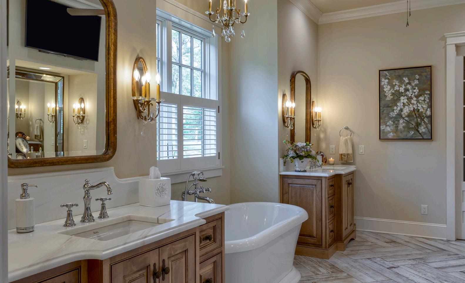 Built in a historic community, the Rocky Branch Cottage was designed to look and feel as though it was constructed a century ago. Central to our client’s goals for this home were historic design concepts, functionality, and age-in-place principles. A brick and rock exterior on this English Cottage style home helped to achieve the timeless design, alongside smooth stucco finish on the interior walls, arched entryways, brick accents walls, and mantles crafted from a 108-year-old oak tree that stood on the clients’ lot. Custom built entryway doors were specially designed to showcase the restored beveled glass inserts that once belonged in the client’s grandmother’s 1904 home. Age-in-place principles throughout will allow the clients to live in their dream home for many years to come.