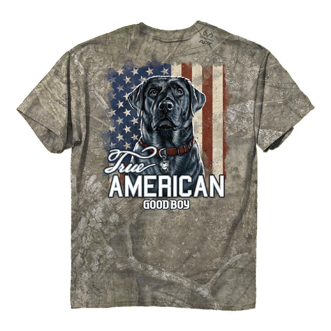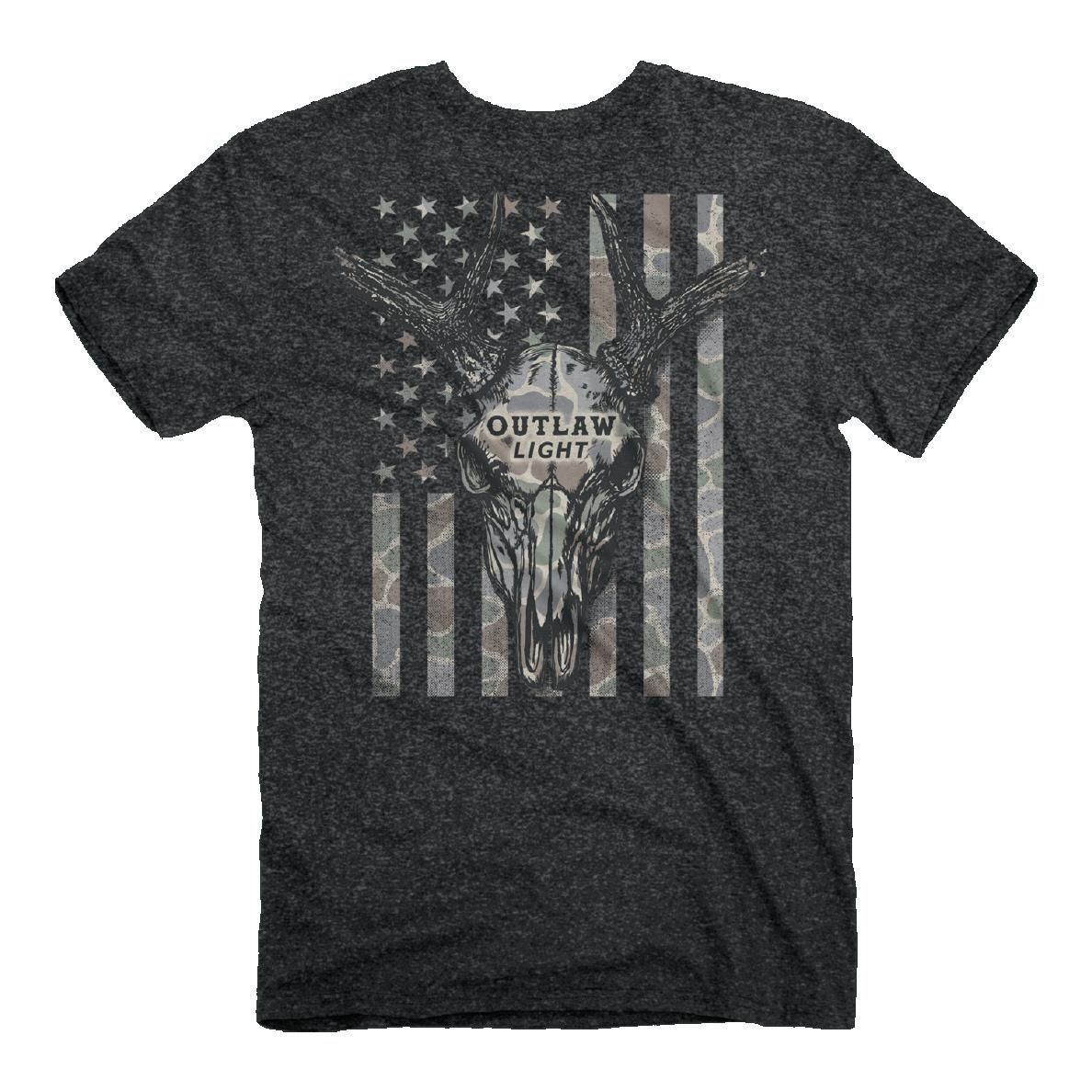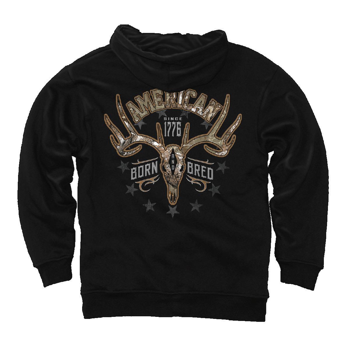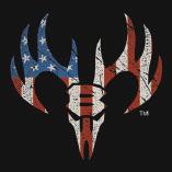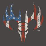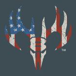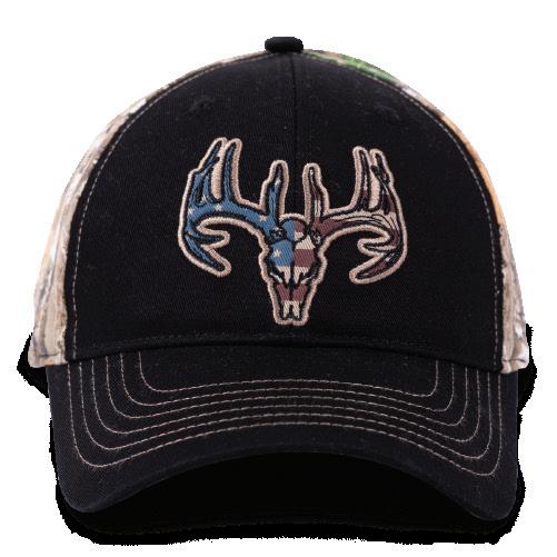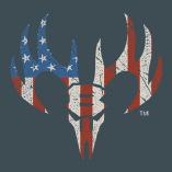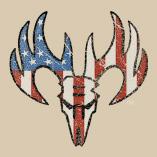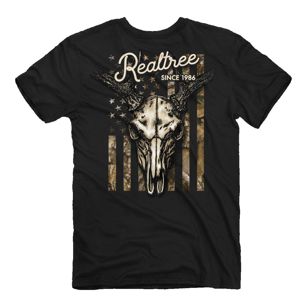 Applique skull and American, embroidered text, screen-printed stars, Realtree camo accents