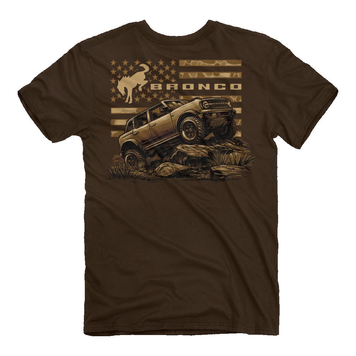 Applique camo stripes and text, embroidered stars stripes, text, and center chest