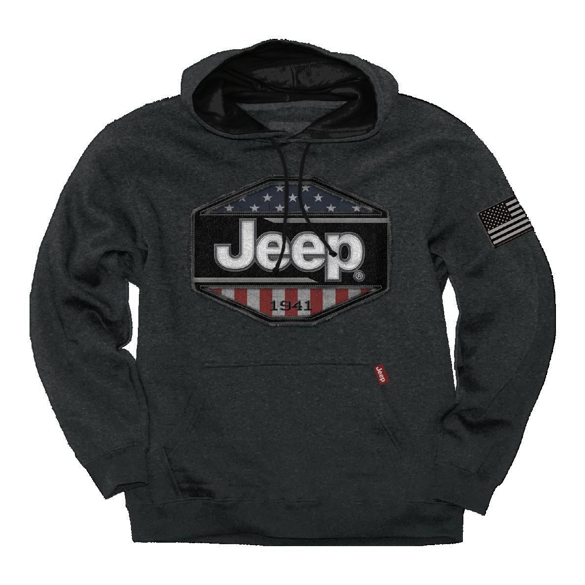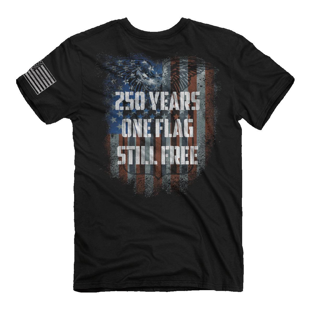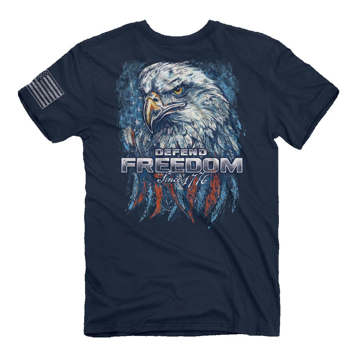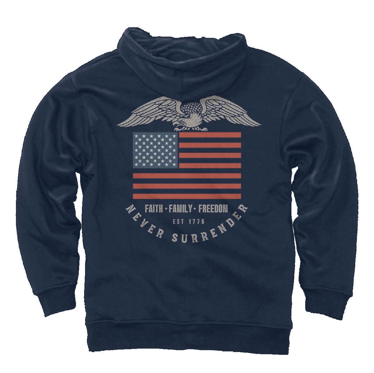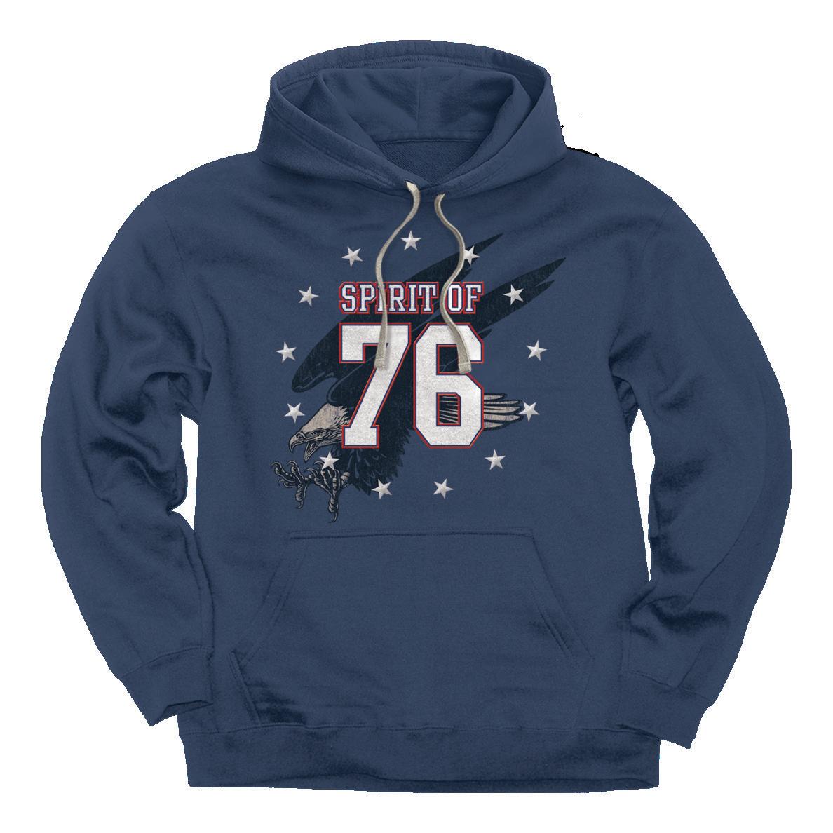 Screen-printed eagle, embroidered stars, applique “Spirit of 76”