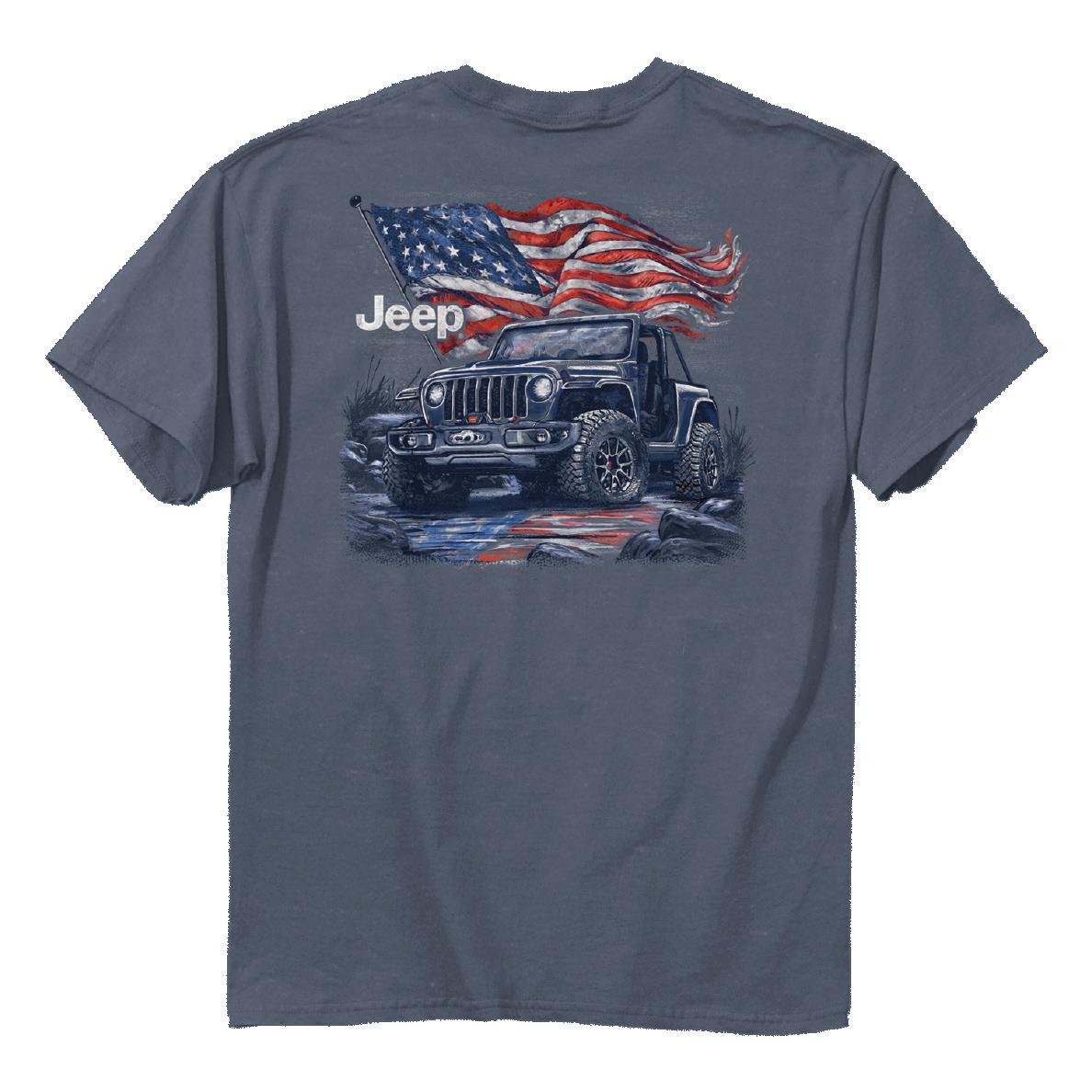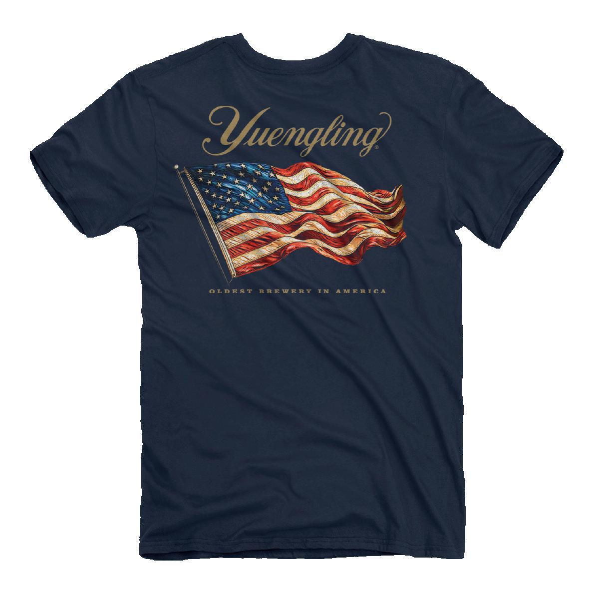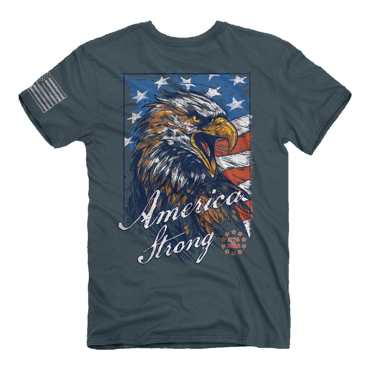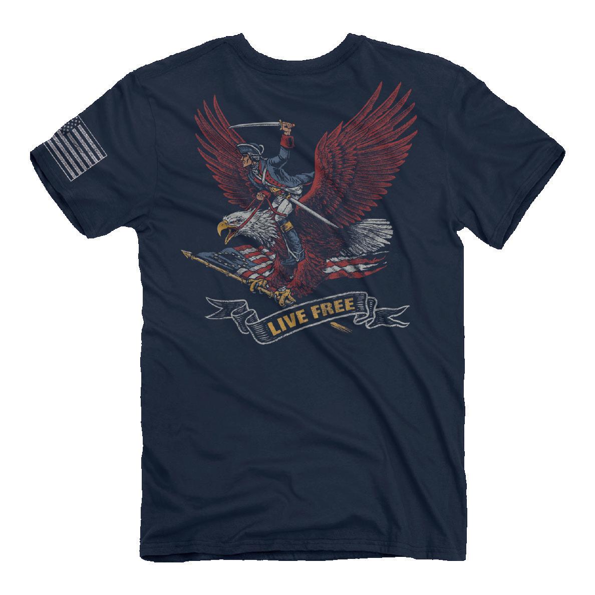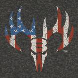 Reverse applique flag, embroidered chest, screen-printed eagle and text