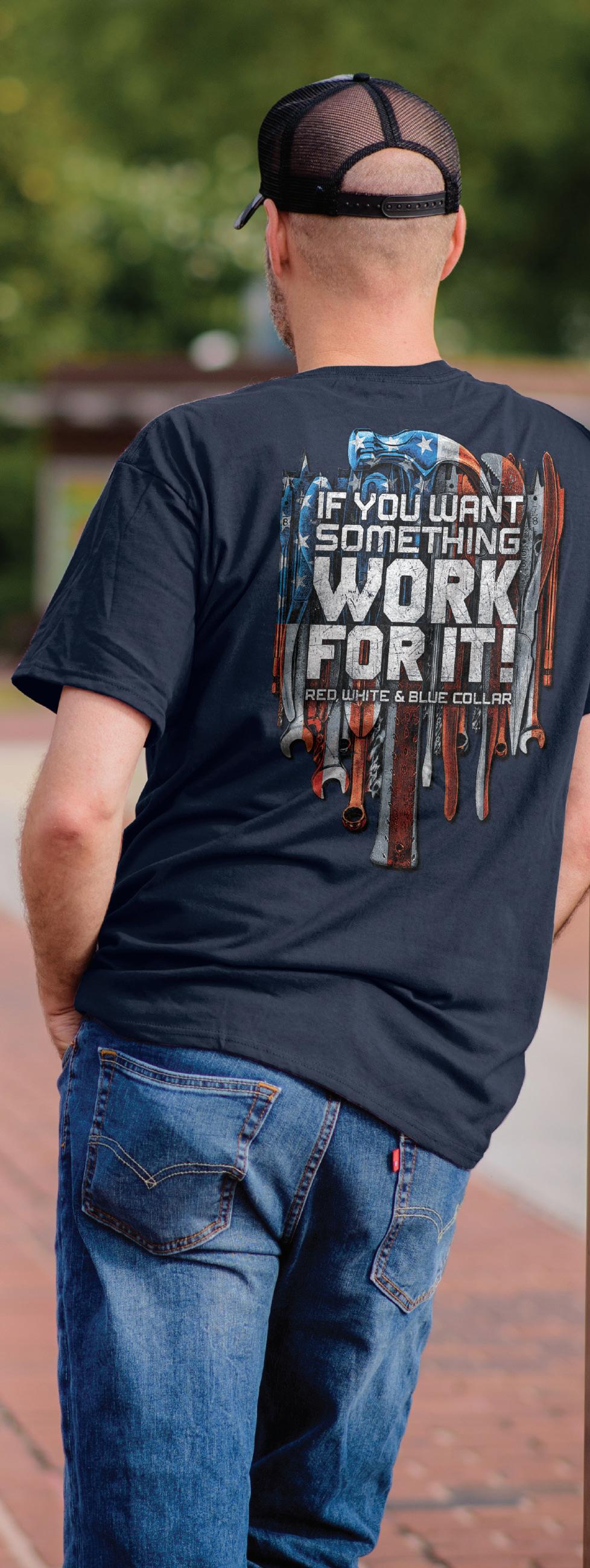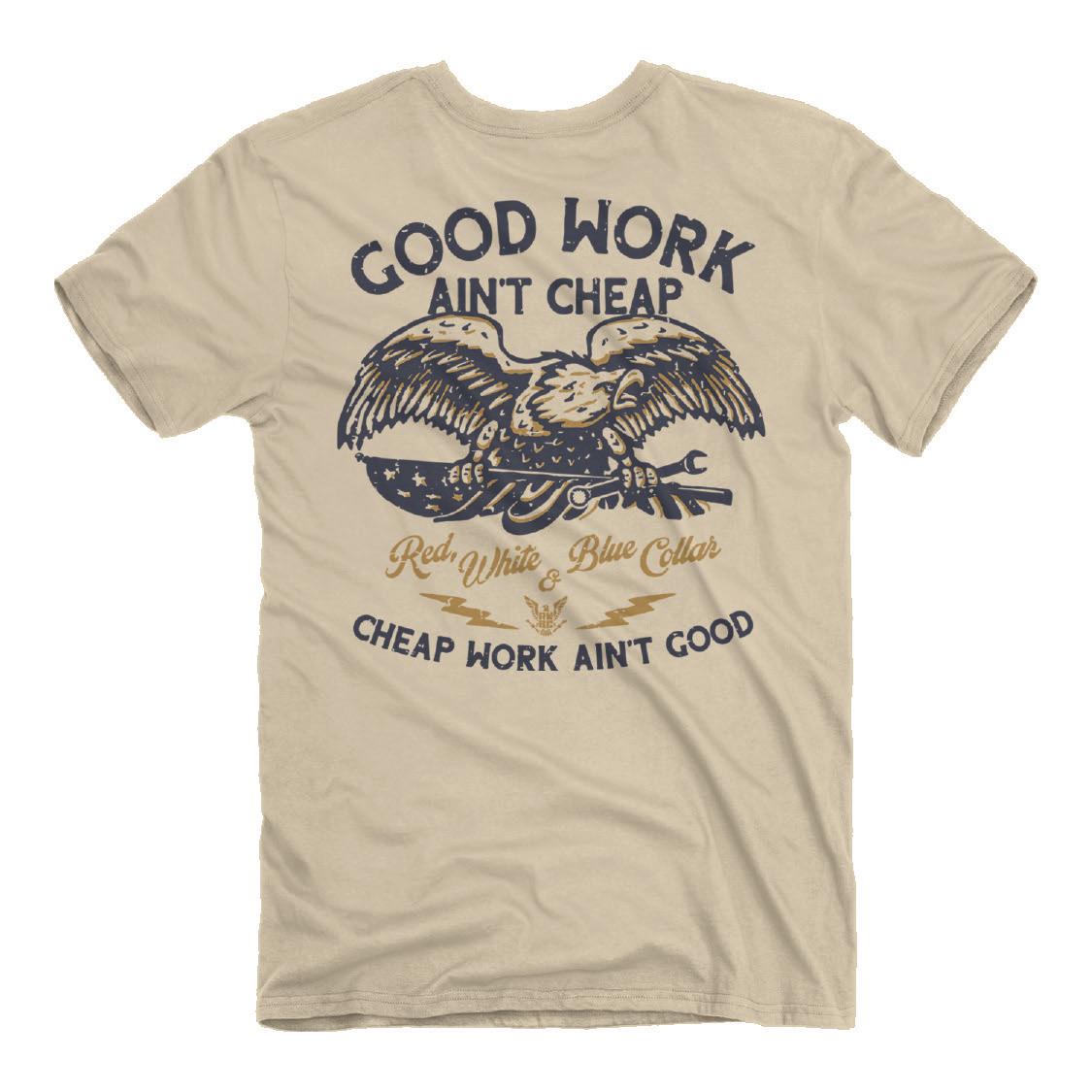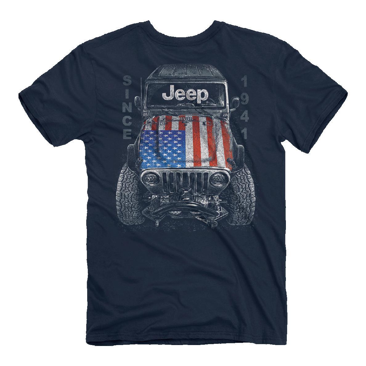 Reverse applique flag, embroidered chest, screen-printed eagle and text