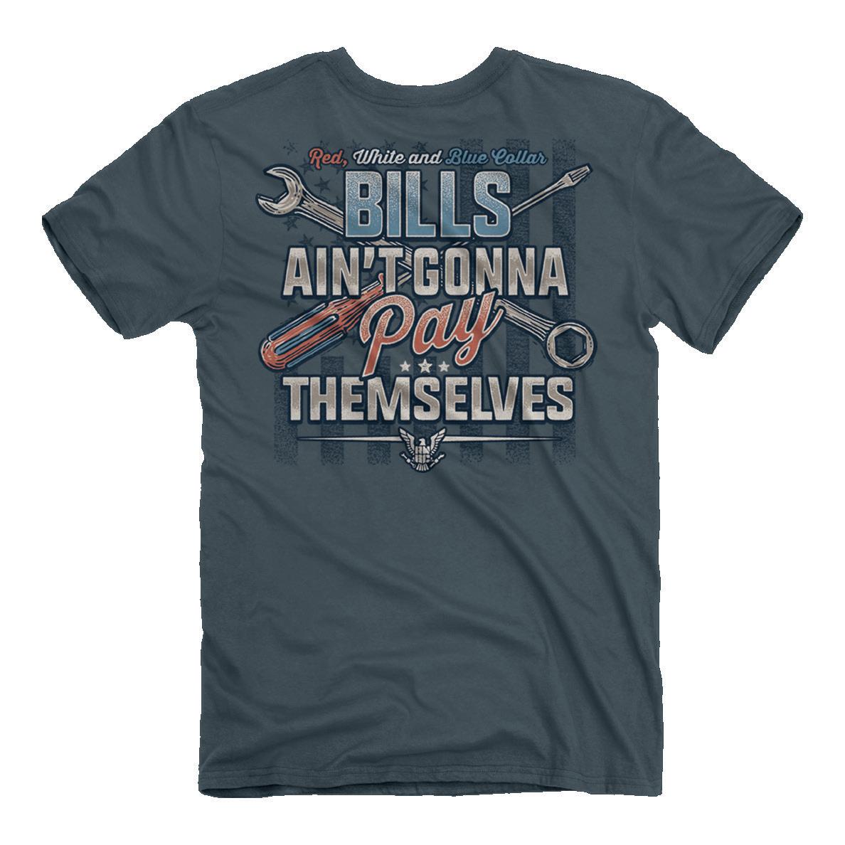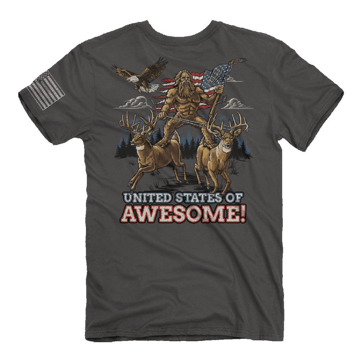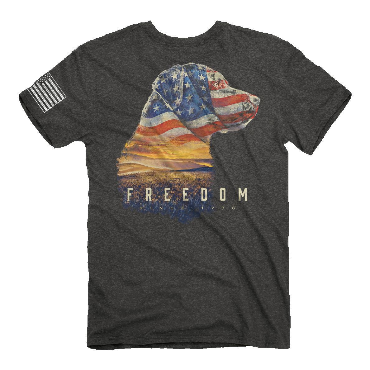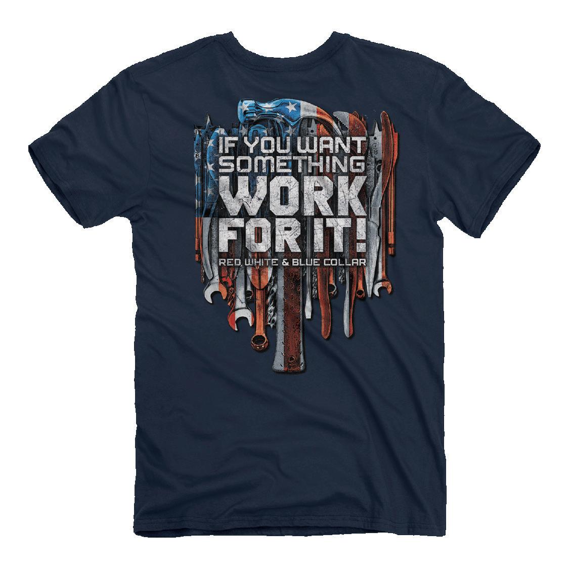 Reverse applique flag, embroidered chest, screen-printed eagle and text