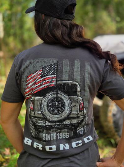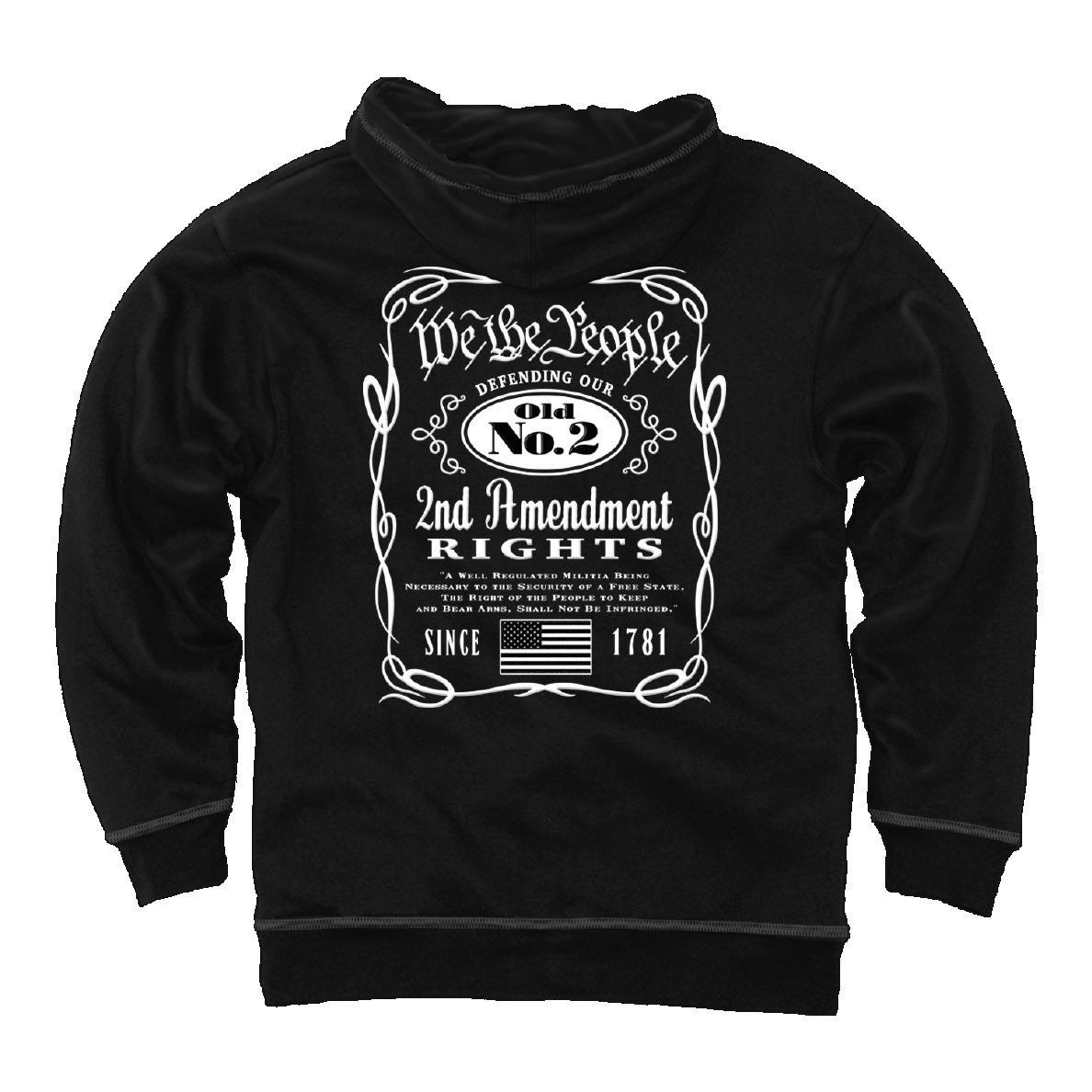 Embroidered text, borders, and chest, screen-printed Old No. 2 and flag patch