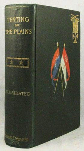 91 [Custer, George General]; Custer, Elizabeth B. TENTING ON THE PLAINS or General Custer in Kansas and Texas (New York: Charles L. Webster & Co., 1889) First Edition as part of Webster’s “Shoulder Strap” series of books on the Union Civil War Generals, and being the second printing overall. Portrait engraving of General Custer on frontispiece with facsimile manuscript inscription, numerous black and white plates, including some by Frederic Remington, maps and black and white illustrations within the text. 8vo, publisher’s original “Shoulder Strap” green cloth, the upper cover with flags and decoration in gilt, red, blue, and white, the spine gilt lettered and epaulette two star epaulette in gilt and black, floral pattern endpapers. xxiii, 702 pp. A handsome copy of one of the most difficult to find of Webster’s ‘Shoulder Strap” books, the green cloth nice and dark with no fading, the upper cover decoration with the colours still very vivid and well preserved, the gilt still bright, some light evidence of age only, the hinges strong and tight, a good sign for this heavy book, the text clean, still an excellent survival.