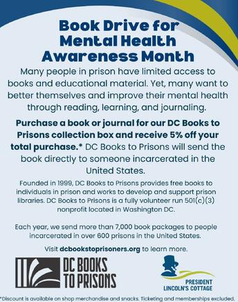 For the month of May the President Lincoln’s Cottage museum held a book drive for much needed and appreciated books on mental health MentalHealthbook drive