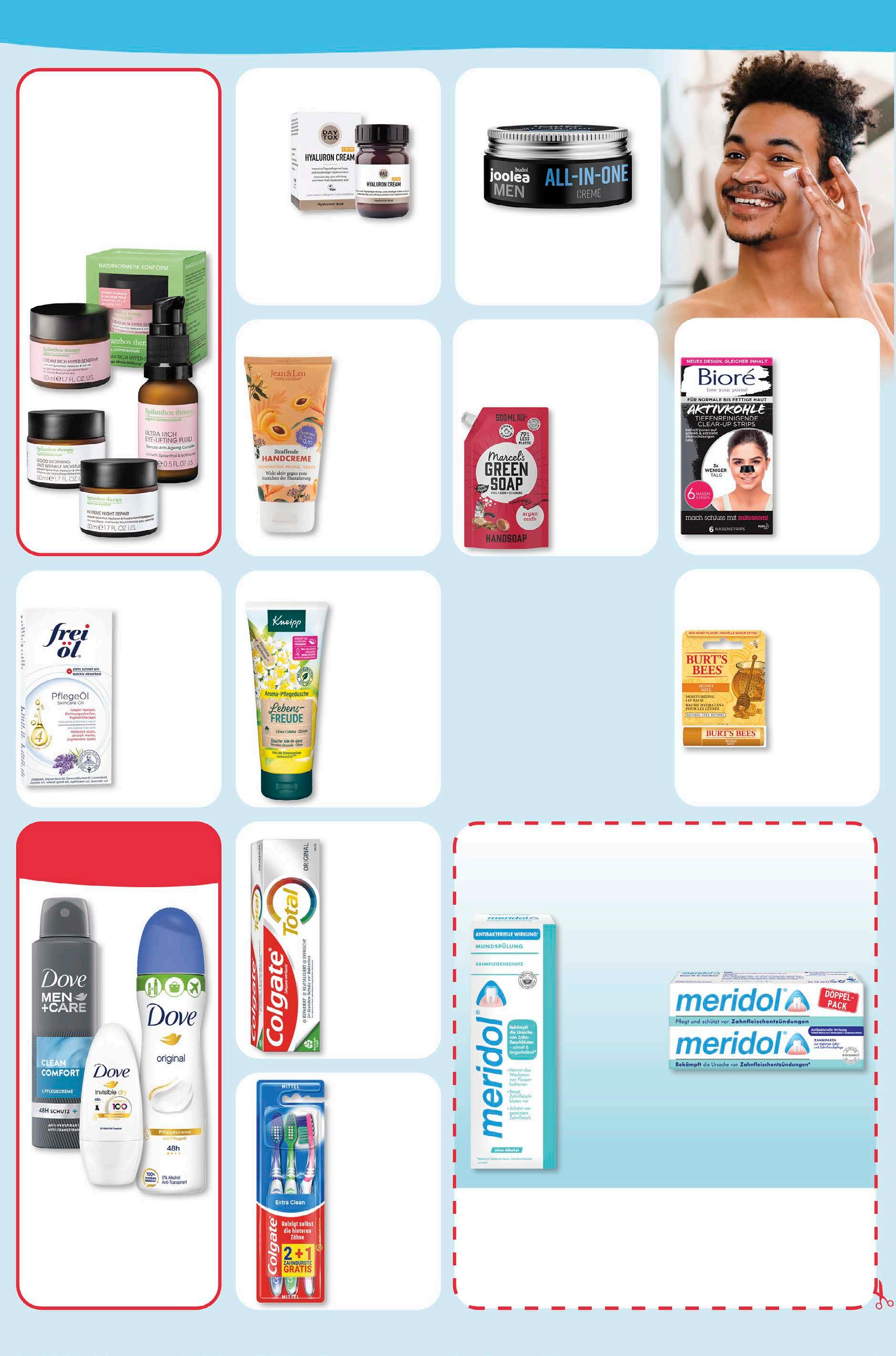 Bioré Clear-Up Strips 6 Stück 3,99 -20% UVP 4,99 Daytox Feuchtigkeitscreme versch. Sorten 50 ml 1 l = 259,80 12,99 -13% UVP 14,99 Jean & Len Handcreme versch. Sorten 75 ml 1 l = 29,60 2,22 -20% UVP 2,79 Green Soap Handseife versch. Sorten vegan 500 ml 1 l = 4,78 2, 39 -20% UVP 2,99 Dove Deo Spray oder Roll-On versch. Sorten 150/75/50 ml 1 l = 11,80/23,60/ 35,40 1,77 -29% UVP 2,49 Joolea Men All in One Creme vegan 150 ml 1 l = 10,60 1,59 -20% 1,99 ‡ budni marke Meridol Mundspülung 400 ml 1 l = 13,23 5,29 -12% UVP 5,99 Meridol Zahncreme 2x 75 ml 1 l = 35,27 5,29 -12% UVP 5,99