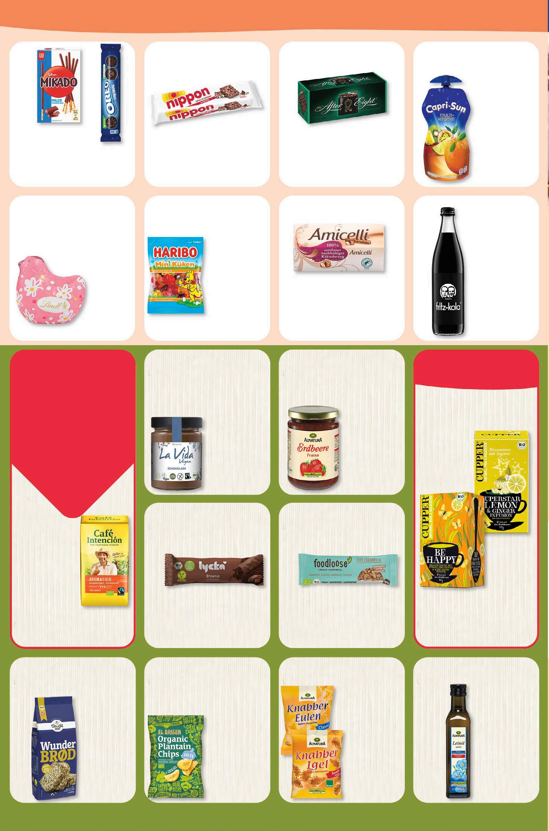 genuss Abgabe in haushaltsüblichen Mengen. Lindt Schokolade Oster Edition 35 g 1 kg = 36,86 1,29 -28% UVP 1,79 Nippon Häppchen 200 g 1 kg = 6,45 1,29 -26% UVP 1,75 Haribo Oster Fruchtgummi versch. Sorten 175/200 g 1 kg = 5,03/4,40 0,88 -26% UVP 1,19 After Eight Classic 200 g 1 kg = 7,45 1,49 -25% UVP 2,29 Fritz-Kola versch. Sorten zzgl. 0,15 € Pfand Gesamtpr. 1,34 € 500 ml 1 l = 2,38 1,19 -28% UVP 1,65 Capri-Sun versch. Sorten vegan 330 ml 1 l = 2,39 0,79 -20% UVP 0,99 Amicelli Waffelröllchen 150 g 1 kg = 9,93 1,49 -25% UVP 1,99 Mikado Sticks oder Oreo Rolle Original 75/154 g 1 kg = 14,80/7,21 1,11 aktion Café Intención Aromatico gemahlen 500 g 1 kg = 15,98 7,99 -11% UVP 8,99 Alnatura Fruchtaufstrich Erdbeere versch. Sorten 420 g 1 kg = 5,69 La Vida Vegan Schokoladencreme versch. Sorten 270 g 1 kg = 12,93 3,49 -19% UVP 4,29 2, 39 -11% UVP 2,69 Lycka Schokoriegel versch. Sorten vegan 40 g 1 kg = 24,75 0,99 -23% UVP 1,29 Cupper Tee versch. Sorten vegan 20x 2 g 1 kg = 55,50 2,22 -26% UVP 2,99 Foodloose Nussriegel versch. Sorten 35 g 1 kg = 38,00 1, 33 -21% UVP 1,69 Alnatura Leinöl vegan 250 ml 1 l = 7,96 1,99 -13% UVP 2,29 El Origen Chips versch. Sorten vegan 80 g 1 kg = 22,38 1,79 -10% UVP 1,99 Bauckhof Wunderbröd glutenfrei 600 g 1 kg = 6,65 3,99 -11% UVP 4,49 Alnatura Knabber Snacks versch. Sorten 100 g 1 kg = 11,90 1,19 aktion dienstag happy deal am 6,49 UVP 8,99 -28% 1 kg = 12,98 knaller-preis