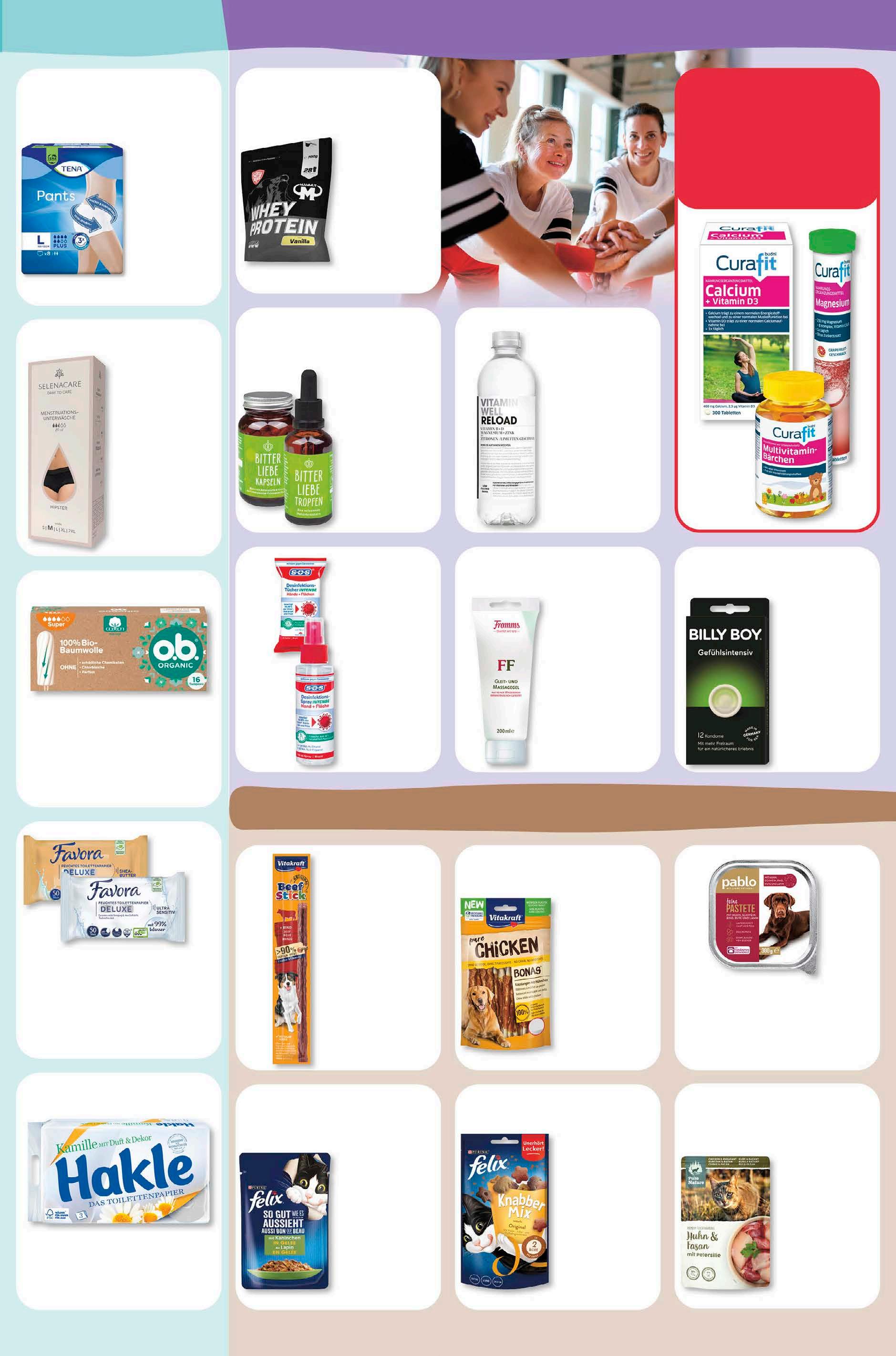 hygiene gesundheit tiernahrung Tena Pants Hygieneeinlagen versch. Größen und Sorten Packung 6,99 -26% UVP 9,49 Fromms FF Gleitgel 200 ml 1 l = 34,95 6,99 -13% UVP 7,99 SOS Hand-DesinfektionsSpray oder -Tücher1 100 ml/25 Stück 1 l = 19,90 1,99 -13% UVP 2,29 Billy Boy Kondome versch. Sorten Packung 5,99 -29% UVP 8,49 Felix Katzennahrung versch. Sorten 85 g 1 kg = 5,88 0,50 -28% UVP 0,69 Felix Knabbermix Katzensnack versch. Sorten 60 g 1 kg = 14,83 0,89 -31% UVP 1,29 Vitakraft Hundesnack versch. Sorten 12 g 1 kg = 29,17 0, 35 -36% UVP 0,55 Vitakraft Kaustangen versch. Sorten 80 g 1 kg = 21,13 1,69 -26% UVP 2,29 Selenacare Menstruations-Unterwäsche versch. Größen und Sorten Stück 9,99 -16% UVP 11,90 Pure Nature Katzennahrung versch. Sorten 85 g 1 kg = 11,65 0,99 -17% UVP 1,19 Vitamin Well Reload Vitamindrink versch. Sorten 500 ml 1 l = 2,98 1,49 -25% UVP 1,99 budni marke Favora Deluxe Feuchtes Toilettenpapier versch. Sorten 50 Stück 1,09 -16% 1,29 ‡ budni marke BitterLiebe Tropfen oder Kapseln versch. Sorten 53 ml/50 g 1 l/kg = 245,09/259,80 12,99 -13% UVP 14,99 budni marke Pablo Hundenahrung versch. Sorten 300 g 1 kg = 1,83 0,55‡ -20% 0,69 Mammut Whey Protein Pulver versch. Sorten 700 g 1 kg = 22,84 15,99 -20% UVP 19,99 o.b. Tampons Organic versch. Sorten Packung 2,49 aktion 1 Biozidprodukte vorsichtig ver wenden. Vor Gebrauch stets Etikett und Produktinformation lesen. Hakle Toilettenpapier 3-lagig 8x 150 Blatt 3, 33 -12% UVP 3,79 10% rabatt auf alle artikel von curafit.