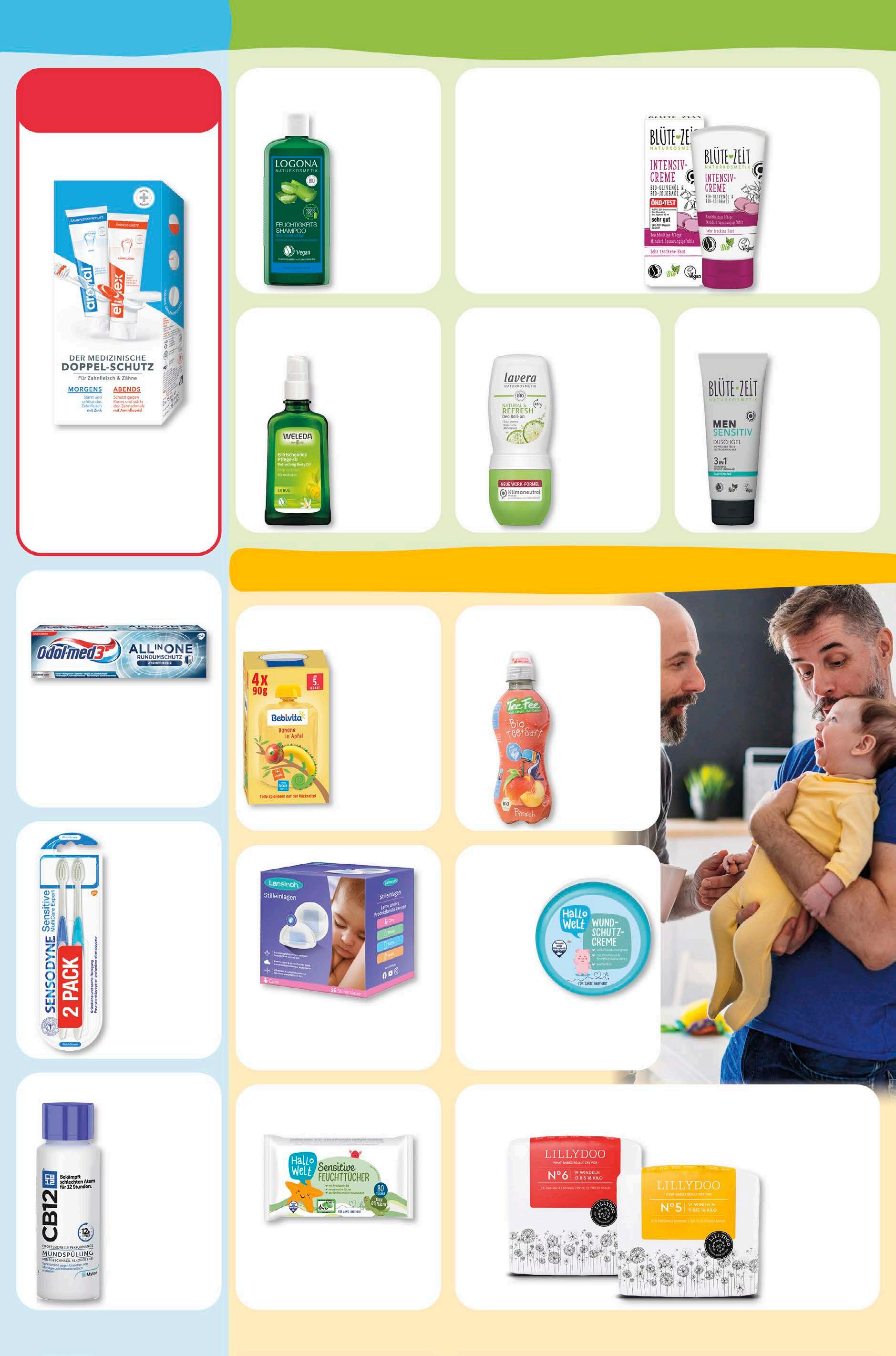 naturkosmetik Odol-med3 Zahncreme versch. Sorten 75 ml 1 l = 26,53 1,99 -20% UVP 2,49 Sensodyne Sensitive Zahnbürste weich 2 Stück 4,79 -29% UVP 6,79 Aronal/ Elmex DoppelSchutz Zahncreme 2x 75 ml 1 l = 33,27 4,99 -29% UVP 6,99 doppelpack CB12 Mundspülung versch. Sorten 200 ml 1 l = 31,45 6,29 -10% UVP 6,99 Bebivita Quetschi ab 5. Monat versch. Sorten 4x 90 g 1 kg = 6,64 2, 39 -20% UVP 2,99 Hallo Welt Babytücher Sensitive 80 Stück 0,99 -34% 1,49 budni marke Hallo Welt Wundschutzcreme vegan 150 ml 1 l = 9,93 1,49 -25% 1,99 budni marke Lillydoo Windeln versch. Größen vegan 19 Stück 6,49 -13% UVP 7,49 Teefee Tee & Saft Kindergetränk versch. Sorten vegan 300 ml 1 l = 2,97 0,89 -10% UVP 0,99 Weleda ErfrischungsÖl 100 ml 1 l = 99,90 9,99 -23% UVP 12,95 Logona Shampoo versch. Sorten vegan 250 ml 1 l = 21,96 5,49 -35% UVP 8,49 Blüte-Zeit Men Duschgel versch. Sorten 200 ml 1 l = 7,45 1,49 -17% 1,79 ‡ budni marke Lavera Deo Roll-On versch. Sorten 50 ml 1 l = 69,80 3,49 -42% UVP 5,99 Blüte-Zeit Pflegende Intensivcreme vegan 50 ml 1 l = 45,80 2,29 -30% 3,29 budni marke Lansinoh Stilleinlagen noch weicher 36 Stück 3,99 -33% UVP 5,99 1 www.blauer-engel.de /uz208 1 knaller-preis