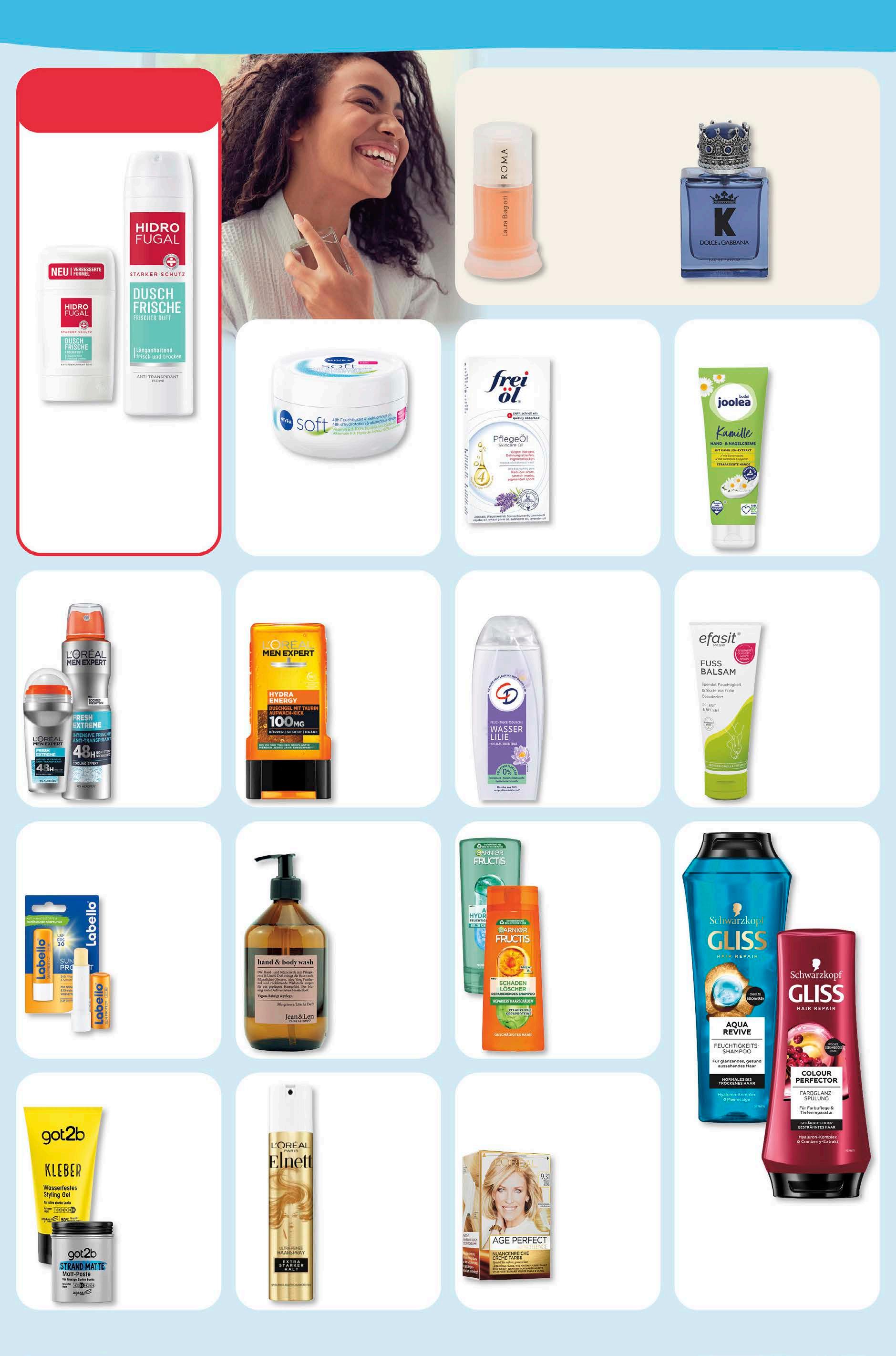 Abgabe in haushaltsüblichen Mengen. Günstigster Preis der letzten 30 Tage: Blüte-Zeit Pflegende Intensivcreme 2,80, Hallo Welt Wundschutzcreme 1,69, Hallo Welt Babytücher Sensitive 1,34. ‡ Gleichzeitig günstigster Gesamtpreis der letzten 30 Tage. pflege & frische Nivea Soft Creme 200 ml 1 l = 14,45 2,89 -17% UVP 3,49 L‘Oréal Excellence Coloration versch. Farben Packung 4,99 -17% UVP 5,99 Garnier Fructis Shampoo oder Spülung versch. Sorten 250/200 ml 1 l = 7,96/9,95 1,99 -31% UVP 2,89 Got2b Haarstyling versch. Sorten 100/150 ml 1 l = 44,90/29,93 4,49 -10% UVP 4,99 L‘Oréal Men Expert Deo Spray oder Roll-On versch. Sorten 150/50 ml 1 l = 14,80/44,40 2,22 -11% UVP 2,49 L‘Oréal Men Expert Duschgel versch. Sorten 250 ml 1 l = 6,76 1,69 -13% UVP 1,95 Jean & Len Hand & Body Seife versch. Sorten 500 ml 1 l = 19,98 9,99 -17% UVP 11,99 Elnett Haarspray versch. Sorten 250 ml 1 l = 11,15 2,79 -30% UVP 3,99 Labello Sun Lippenpflegestift LSF30 5,5 ml 1,99 -20% UVP 2,49 Hidrofugal Deo Spray oder Roll-On versch. Sorten 150/50 ml 1 l = 19,93/59,80 2,99 -17% UVP 3,59 Efasit Fuß Balsam vegan 75 ml 1 l = 31,87 2, 39 -20% UVP 2,99 Frei Öl Pflegeöl 125 ml 1 l = 79,92 9,99 -27% UVP 13,70 Joolea Handcreme versch. Sorten vegan 125 ml 1 l = 7,92 0,99 -14% 1,15 ‡ budni marke CD Duschgel versch. Sorten 250 ml 1 l = 5,96 1,49 -17% UVP 1,79 Laura Biagiotti Roma Eau de Toilette 50 ml 24,99 -55% UVP 55,00 Dolce & Gabbana K for Men Eau de Parfum 50 ml 44,44 -49% UVP 87,00