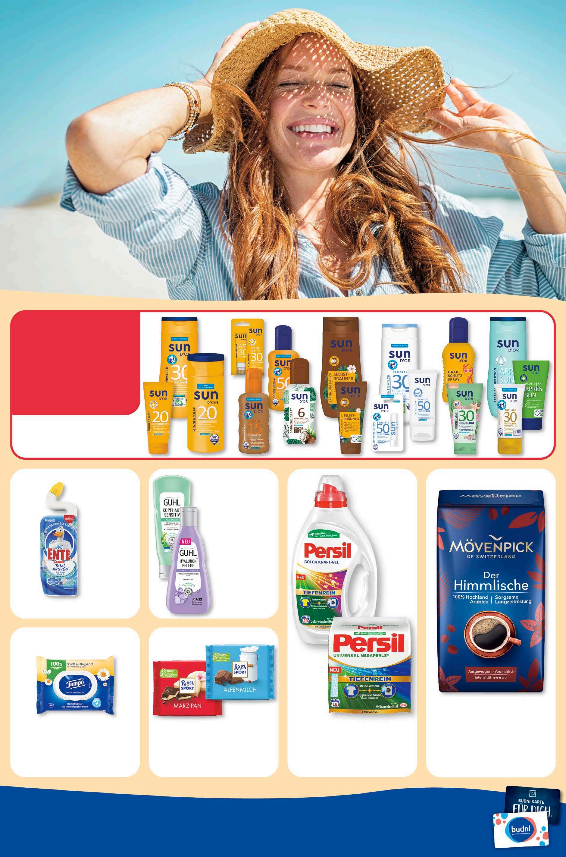 entdecken. budni marke Guhl Shampoo oder Spülung versch. Sorten 250/200 ml 1 l = 13,32/16,65 3, 33 -17% UVP 3,99 Mövenpick Kaffee Der Himmlische 500 g 1 kg = 9,98 4,99 -38% UVP 7,99 Persil Waschmittel versch. Sorten 16/20 WL 1 WL = 0,35/0,28 5,55 -21% UVP 6,99 Ritter Sport Bunte Vielfalt versch. Sorten 100 g 1 kg = 7,90 0,79 -47% UVP 1,49 Tempo Feuchtes Toilettenpapier versch. Sorten 42 Stück 1,29 -28% UVP 1,79 WC-Ente Total Aktiv Gel1 versch. Sorten 750 ml 1 l = 2,39 1,79 -28% UVP 2,49 1  Biozidprodukte vorsichtig verwenden. Vor Gebrauch stets Etikett und Produktinformation lesen. max. 8 Packungen