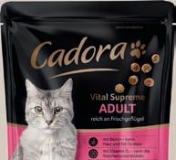Das „Vital Supreme Adult“ Trockenfutter von Cadora ist reich an Frischgeflügel. Biotin kann Haut und Fell unterstützen.