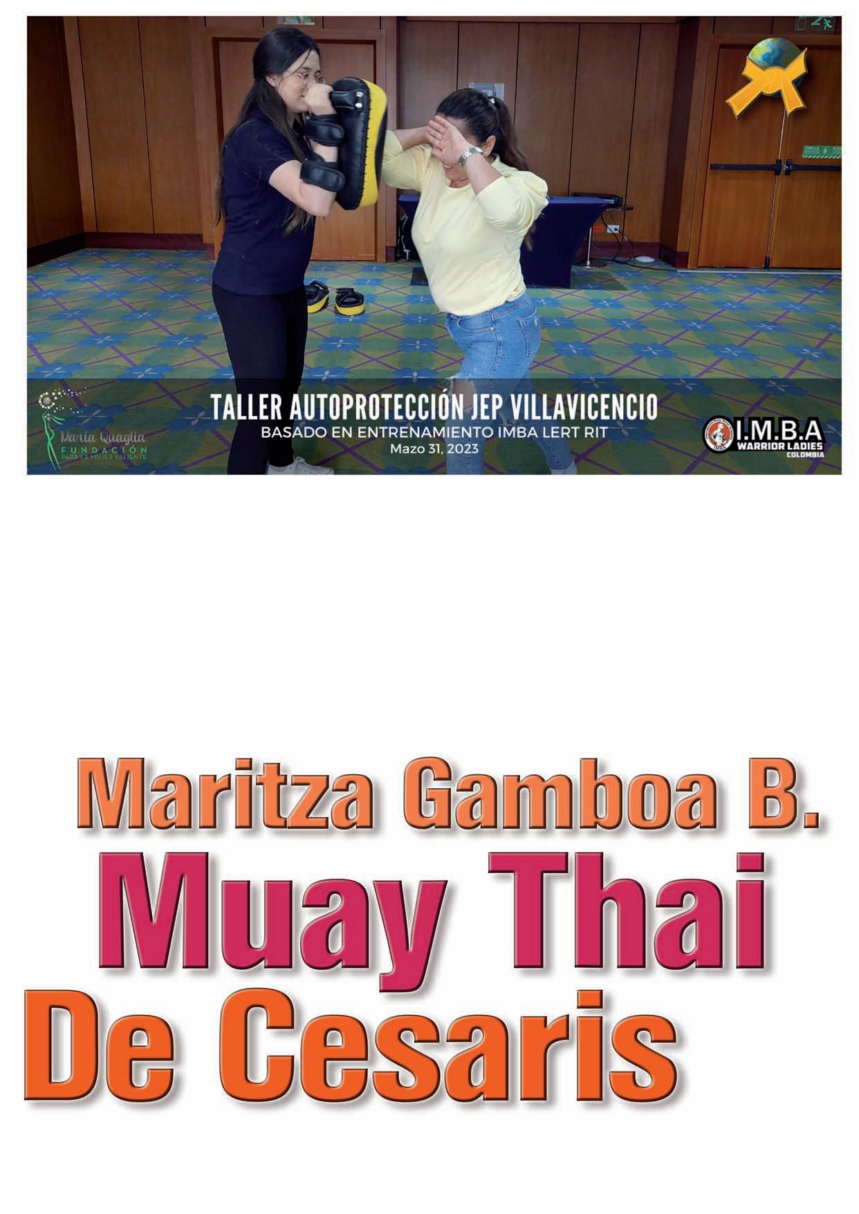 Ainsi, lorsque Maître Marco dit que l'Art qu'il enseigne est pour le VRAI combat, c'est totalement vrai et il est très loin du spectacle chorégraphique ou de la partie sportive qui est normalement enseignée dans les académies ; son Art est réel, il est pour le monde réel, il est pour affronter la vraie violence (beaucoup d'entre nous dans notre Académie IMBA en Colombie l'ont vérifié dans nos propres expériences). Et quand il dit que le Muay Lert Rit IMBA est une pratique martiale parfaite pour les femmes, c'est aussi totalement vrai : ce n'est pas en vain qu'une femme d'une ville très éloignée de la capitale du pays m'a dit dans l'un de nos ateliers, la voix fêlée, mais avec toute la force du monde : "si j'avais connu cette technique avant, mon ex-mari ne m'aurait pas pendue... Je suis en vie parce que j'ai perdu la raison, le lâche a cru qu'il m'avait tuée et s'est enfui" (des mots très forts, mais c'est la dure réalité de mon pays).