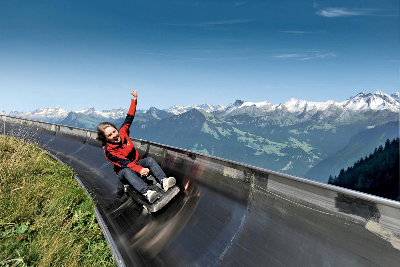 Zoom through steep curves, dragon dens and over jumps. At 1,350 meters the Fräkigaudi on the Fräkmüntegg is the longest ummer toboggan run in Switzerland. 30 minutes 45 minutes