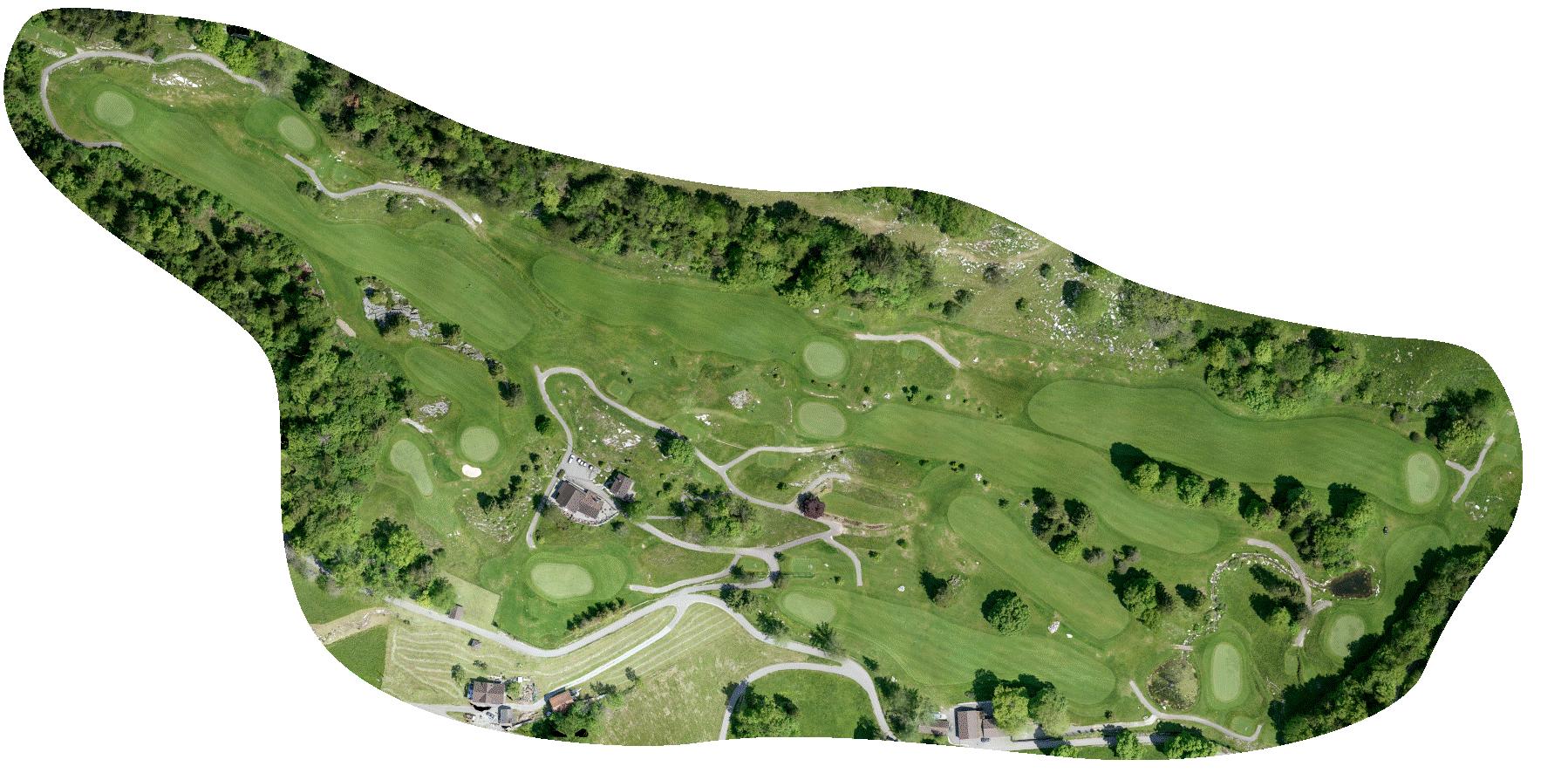 Friedrich Frey-Fürst hat einen innovativen Plan, wie aus sumpfigem Land ein geradezu bilderbuchmässiger Golfplatz werden kann: Zuerst legen die Arbeiter eine ganze Anzahl einstiger Gletscherspalten und Gletschermühlen frei und entfernen den wertvollen Humus. Später füllen sie die Löcher mit den überall weggesprengten Steinen wieder auf. Über die Steine schütten sie die Erde, die sie zuvor gewonnen oder mit Lastwagen aus dem Tal geholt haben. Auf diese Weise ist für schöne Plätze mit einem für den Golfsport geeigneten mageren Graswuchs gesorgt. Alle neun Holes befinden sich in Waldungen aus Buchen und Fichten. Im Ganzen erstreckt sich der neue Golfplatz über eine Fläche von 6 Hektaren.