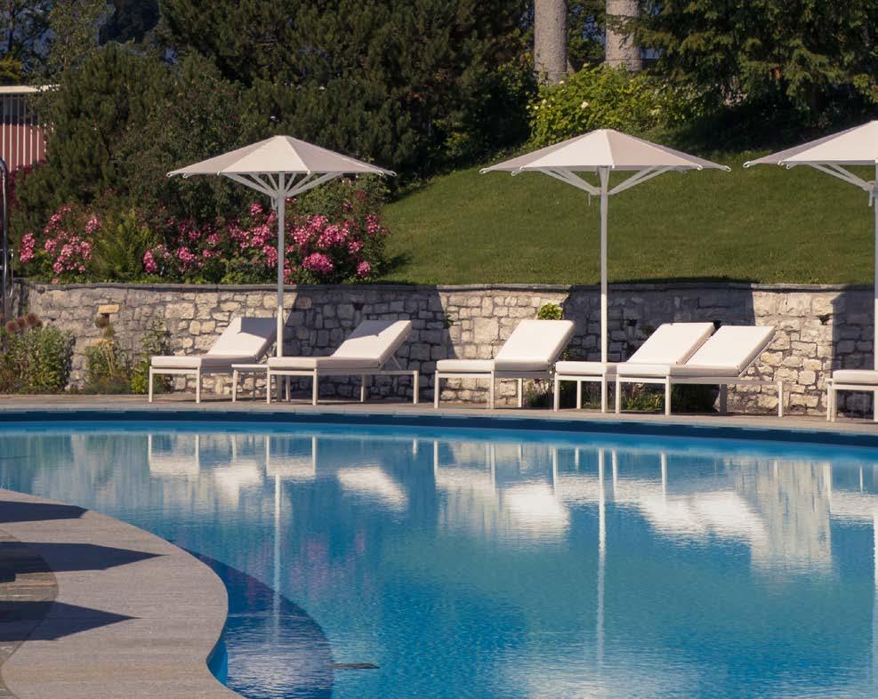 What's up there? Two exceptional spas, beauty treatments, yoga, tennis and golf. The Bürgenstock Alpine Spa has been regularly awarded, including Europe’s Best Hotel Spa. The star is the Infinity Pool suspended 500 metres in the air above Lake Lucerne. The Waldhotel Spa puts you closer to the healing power of nature. A wide larch deck with plunge pools immerses you in the scenery, from meadows to snowy peaks.