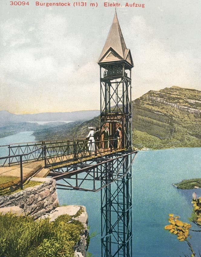 made the Bürgenberg mountain a popular destination for everyone. Both locals and international visitors used the first electric funicular railway from Kehrsiten to reach the resort and strolled along the shady 'Felsenweg' to the Hammetschwand Lift, which took them 152 metres up to the peak of the mountain ridge. For German Grüniger, this anniversary is particularly significant. As a child, he spent many sunny Sundays with his parents on the mountainside, repeatedly marvelling at the impressive structures.