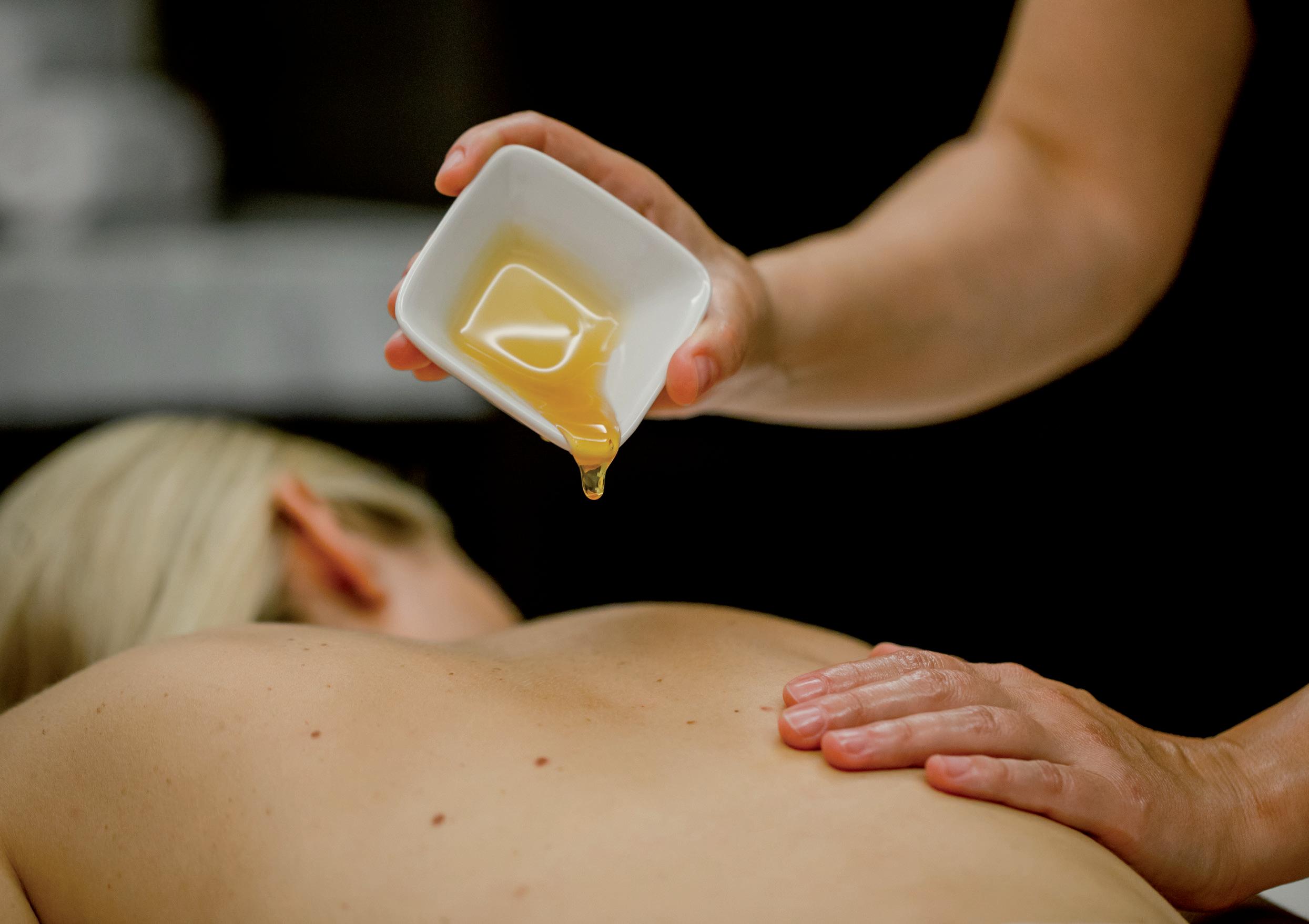 Faszienmassage mit unserem hauseigenen Sky-Deluxe-Honig, gefolgt von einer erholsamen Ganzkörpermassage mit Propolisöl.