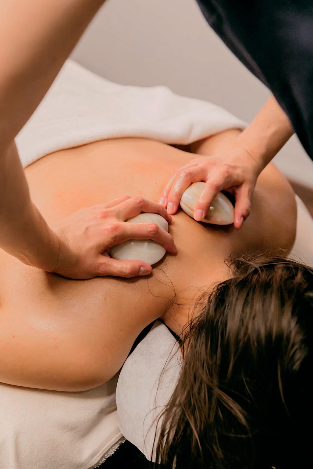 Sud glissent sur les muscles. La chaleur pénètre dans les tissus, créant ainsi une sensation agréable et entraînant un effet profondément relaxant. Possibilité d’utiliser des pierres basaltiques.