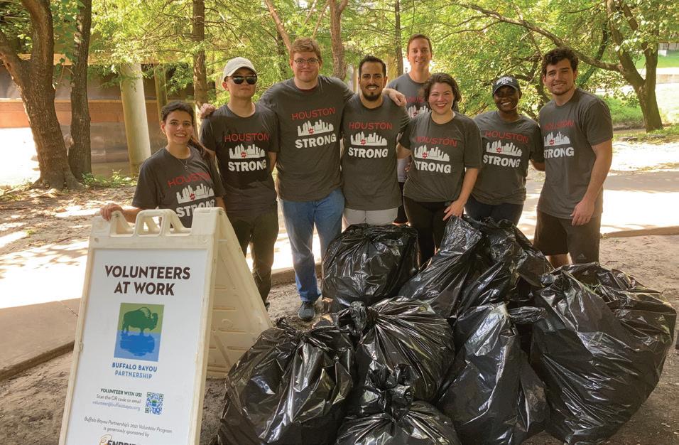 BBP relies heavily on volunteers to supplement the work of our hardworking park crew. In 2021, we had more than 1,600 volunteers who contributed 4,300 hours to maintaining and beautifying Buffalo Bayou Park and downtown green spaces. Generously sponsored by Enbridge, our volunteer program welcomed corporate, school, and civic groups as well as individual volunteers throughout the year.
