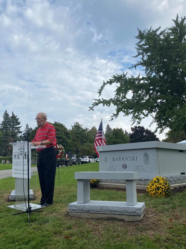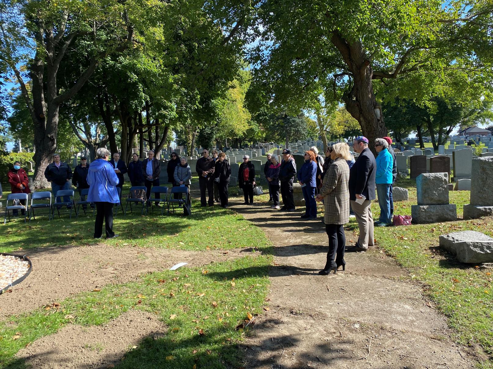 On Sunday October 2nd, community members gathered at B’rith Shalom Cemetery to continue the tradition of visiting the graves of loved ones between the holidays of Rosh Hashanah and Yom Kippur The service, known as Kever Avot V’Imahot, was led by Rabbi Adam Rosenbaum of Temple Beth Tzedek at the community’s Holocaust Memorial in the back of the cemetery Names of the deceased were read by second generation descendants Iris Danziger and Jeff Blum and third generation descendant Edward Hilfstein.