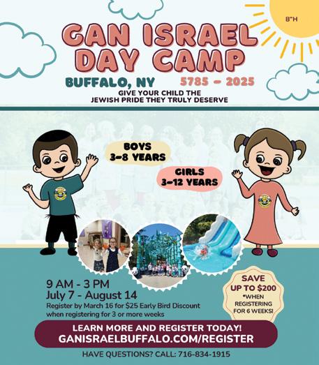 Buffalo Jewish Federation is grateful to so many for their investment in the Campaign for Jewish Buffalo. This month we pay tribute through a listing of all those individuals, families and corporate partners who have made a gift to support our work in 2024 (pp 20-24). Their generosity enables Federation to keep Jewish Buffalo safe, connected and flourishing!