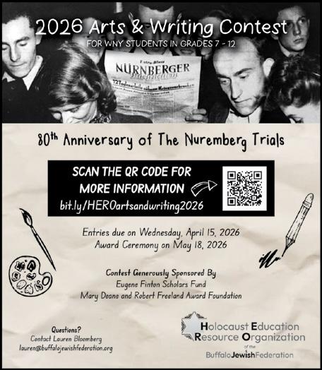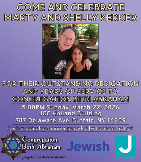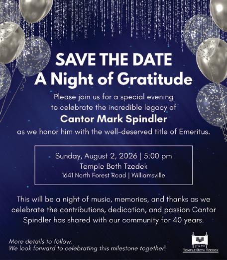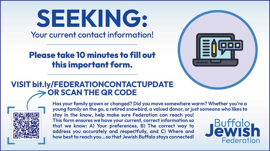 As we begin this month, Federation expresses profound gratitude to the donors and supporters whose generosity sustained our work in 2025. On pages 14-18, we proudly present our Honor Roll, recognizing every individual, family, and corporate sponsor who made a financial contribution this past year. Their investment ensures that Federation is here—day in and day out, in moments of celebration and in times of crisis—strengthening Jewish life in Buffalo and around the globe.