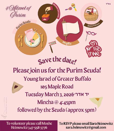 quietly and consistently sustain Jewish Buffalo. The joy, connection, security, and care that define our community are made possible because individuals and families choose to invest - of their time, their resources, and their spirit. Philanthropy, like Purim itself, is an act of faith: a belief that what we give helps ensure that Jewish Buffalo can flourish not only today, but for generations to come.