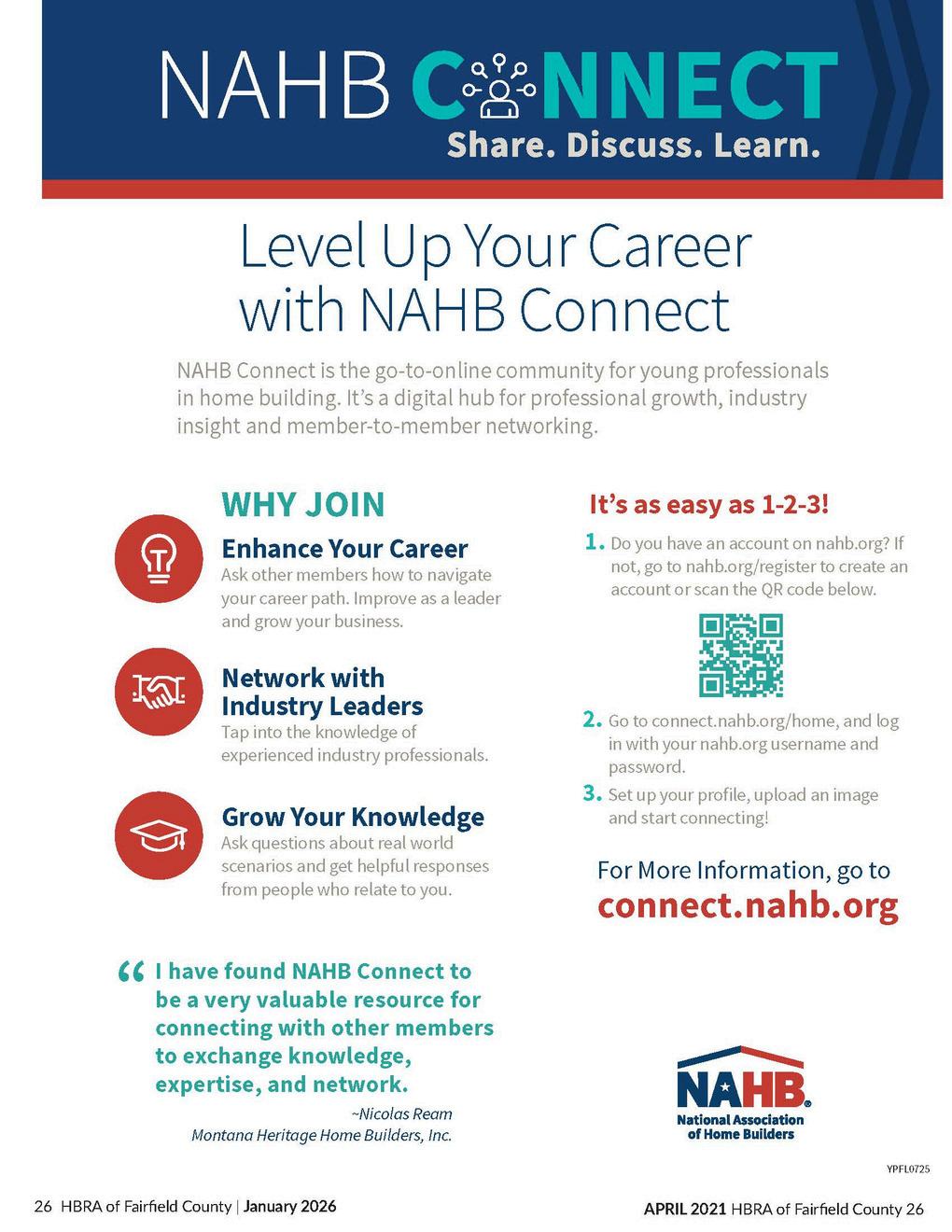 Building Connections is a monthly digital magazine produced and published by the Home Builders & Remodelers Association of Fairfield County. Inside you will find the latest association news, legislative updates, upcoming events, and featured articles about the industry.