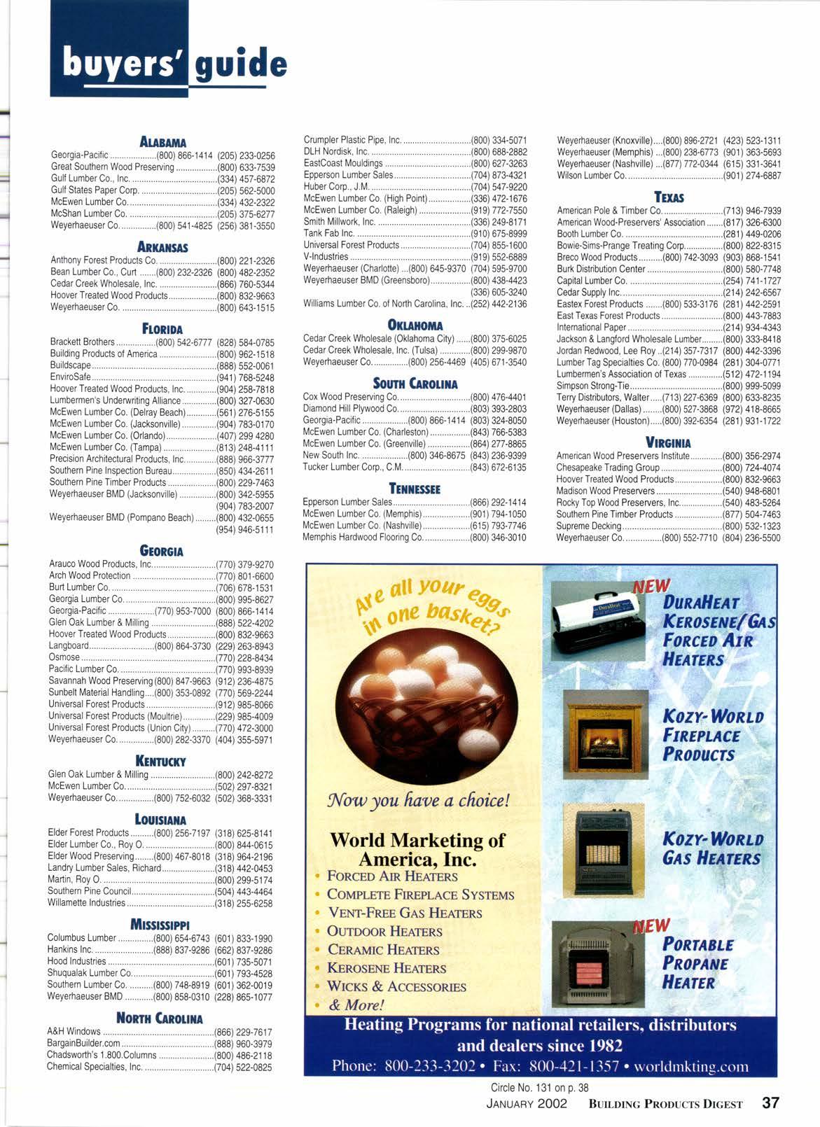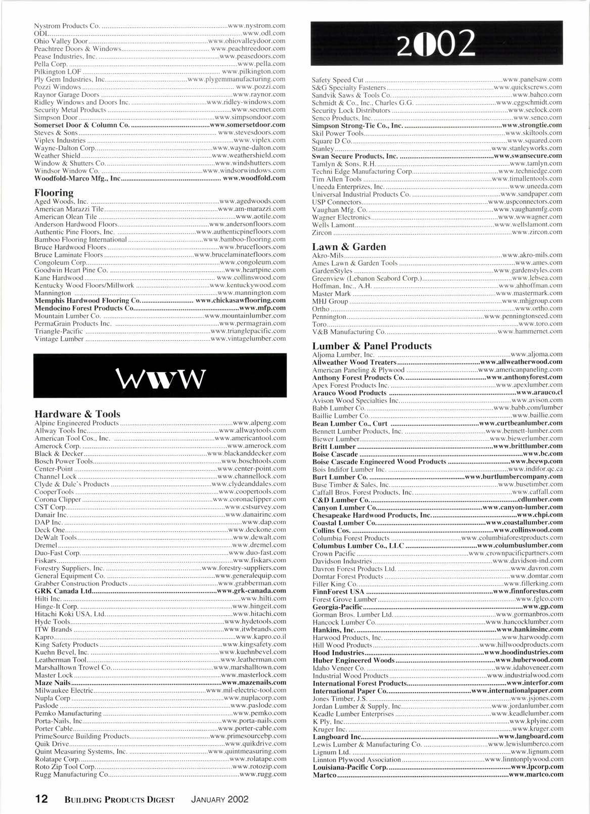 Curt n Lumber Co. P.O. Box 590, Glenwood, k.71943 FAX 1-870-356-4100 National l-(800) 232-2326 www.curtbeanlumber.com JANUAFv 2002 Br rr.rrrr<; Pn<lnlc'rs Dr<;r.;s'r' 3 C rc e No. 103 on p. 38