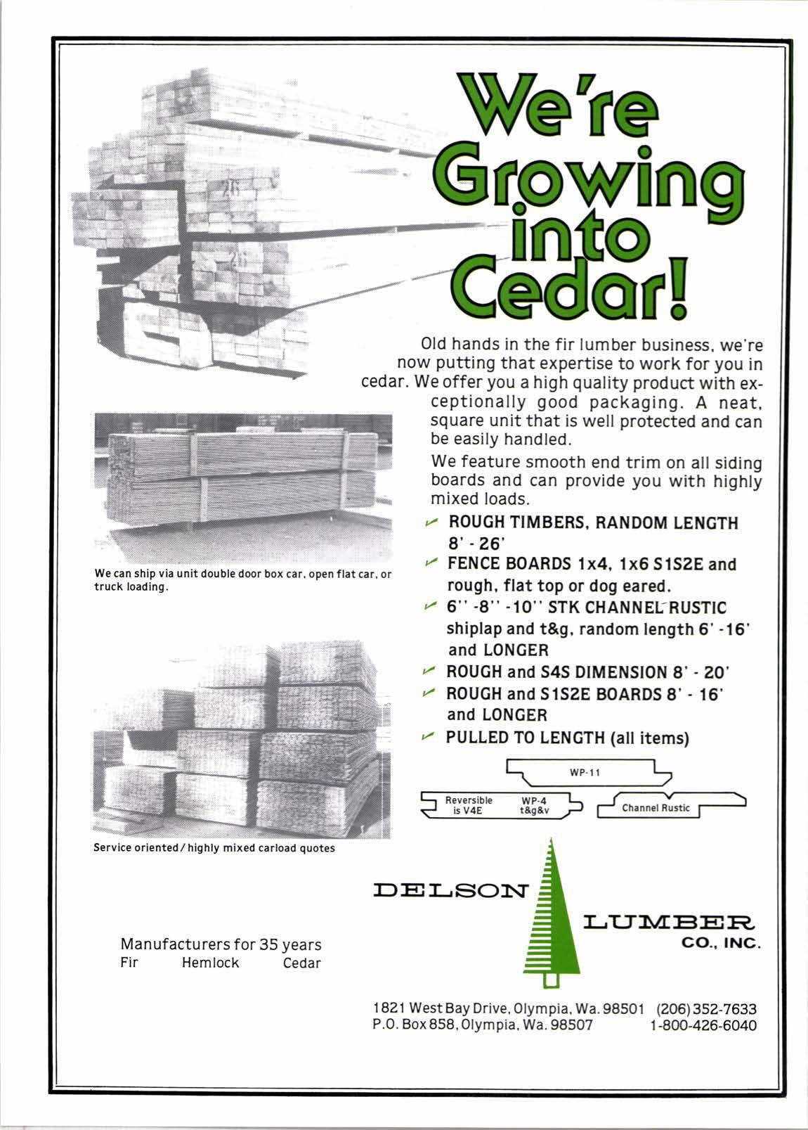 Old hands in the fir lumber business. we're now putting that expertise to work for you in cedar. We offer you a high quality product with exceptionally good packaging. A neat, square unit that is well protected and can be easily handled.
