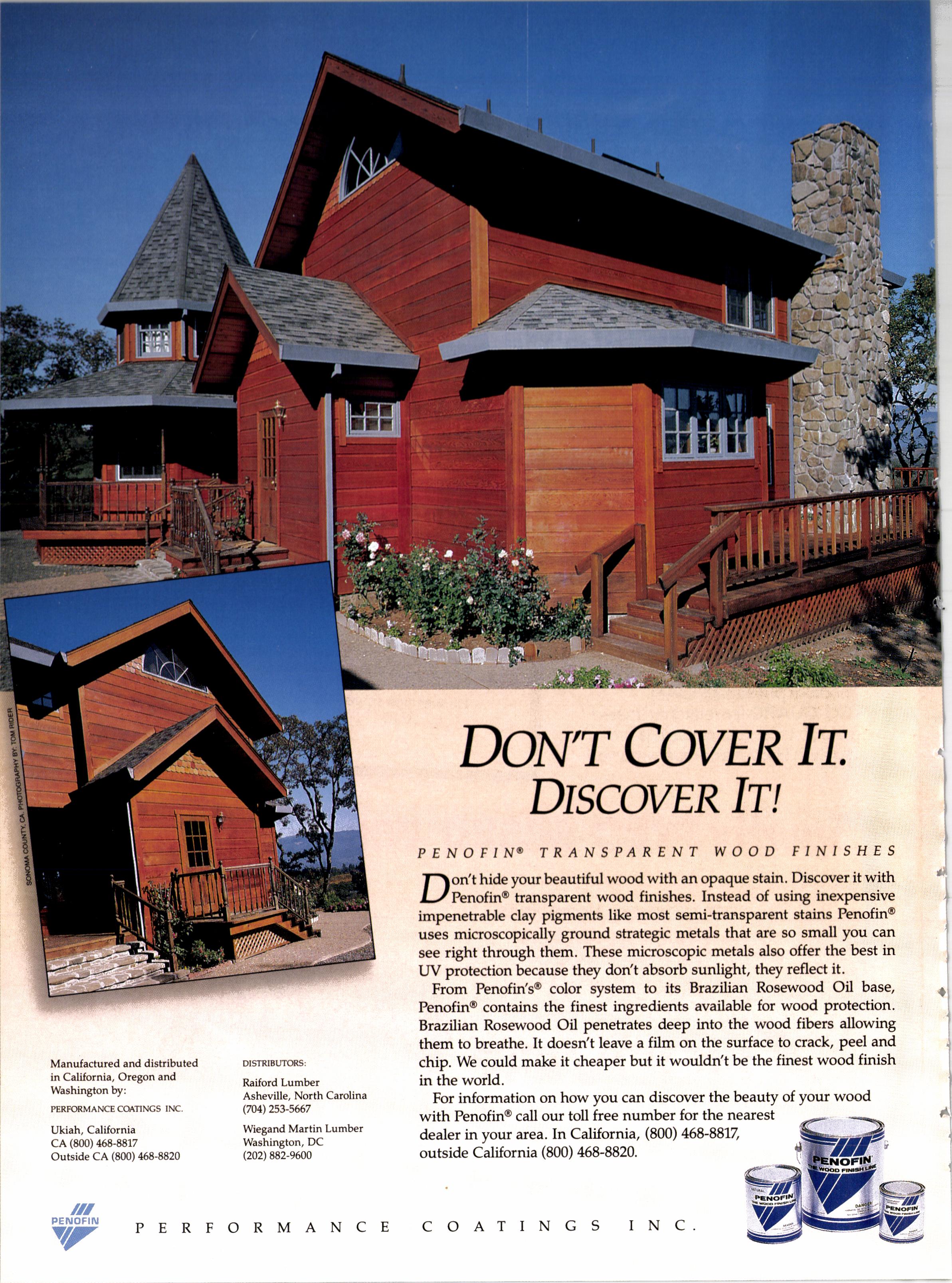 Al's Millworks .......19 Bean Lumber Co., Curt .... .3 BowieSimsPrange . ..........33 Columbus Lumber ., '., '..,...24 Cox Wood Preserving Co. ... '. '.. .7 Donner Mouldings & Millwork '....... 13 Fishman & Affiliates. Bill ..........26 Georgia-Pacific ..Cover II Hartmann-Sanders...,,.,.....25 Hoover Treated Wood Products '.Cover III Louisiana-Pacific . .... Cover I Mansion Industries ....'..'...34 Mouldings & Millwork Inc. .,......32 Mr. Spindle ... .... .20 Navqio Forest Products Industries ,.....22 PacificLumberCo. .... .....17-18 P&M Cedar Products .....8-9 Performance Coatings .. Cover IV Product Sales Co. .....'4 Redwood Forest Products ... '. .... ' .6 Simpson Timber Co. ' '. ' .5 Tarheel Wood Treating Co. ' '......21 TexTrim Mouldings ..'..' '.. '.29