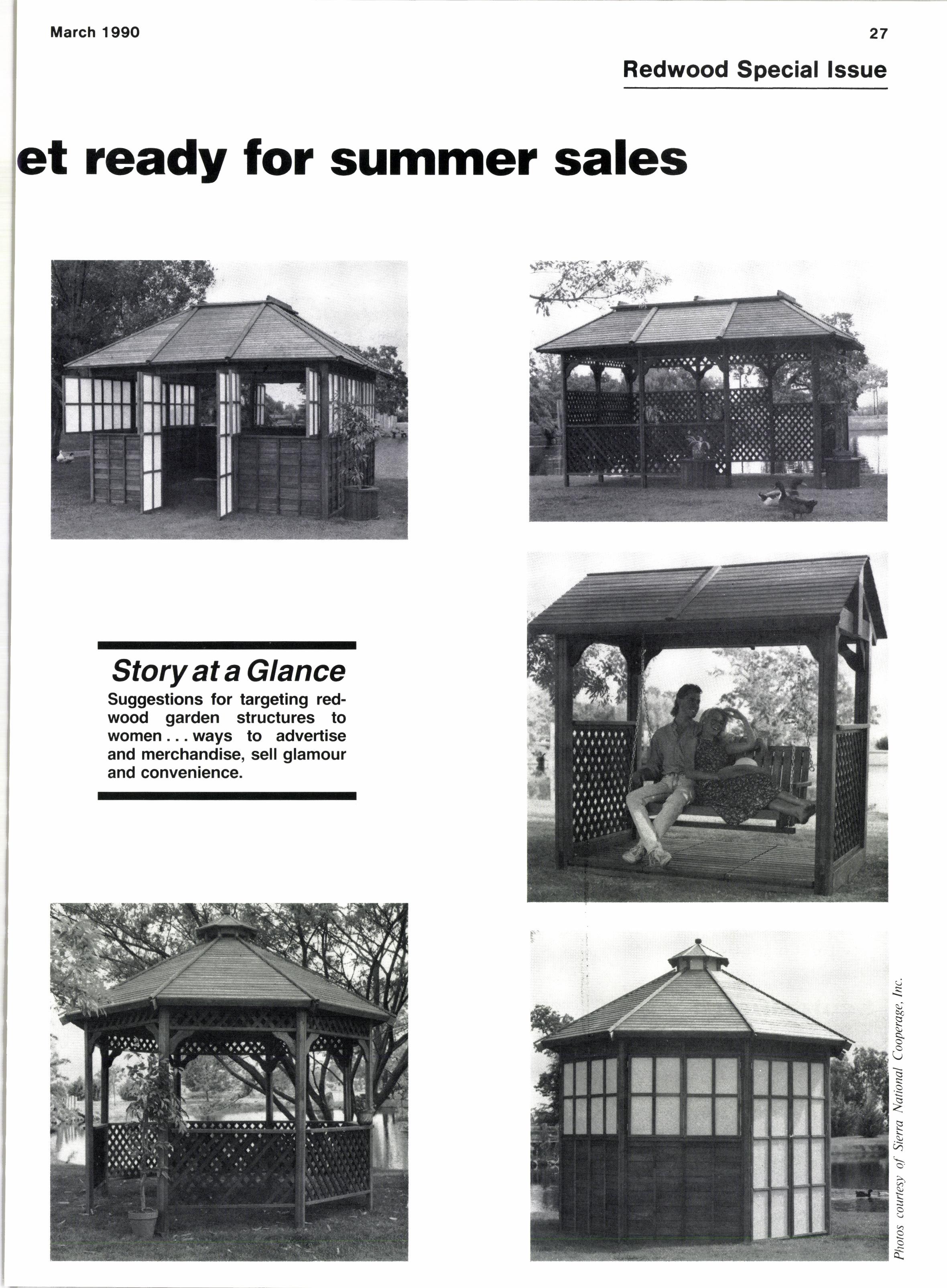 Redwood Executive Examines Environmental lssue Expert Answers Most Asked Redwood Questions How Retailers Use Redwood Contest In Promos Ways To Sell Redwood For Remodeling Projects Sampler Of Outstanding Redwood Deck Displays Bean Lumber Go. Expands Arkansas Mill Complex Home Center Sales Booming In Nashville Market Planning lmproves Summer Redwood Outdoor Sales Tight Knot Redwood Siding Guarantees Quality Moulding Manufacturers Will Bar Code Products Personals 28 New Products 30 New Literature 36 Obituaries 40