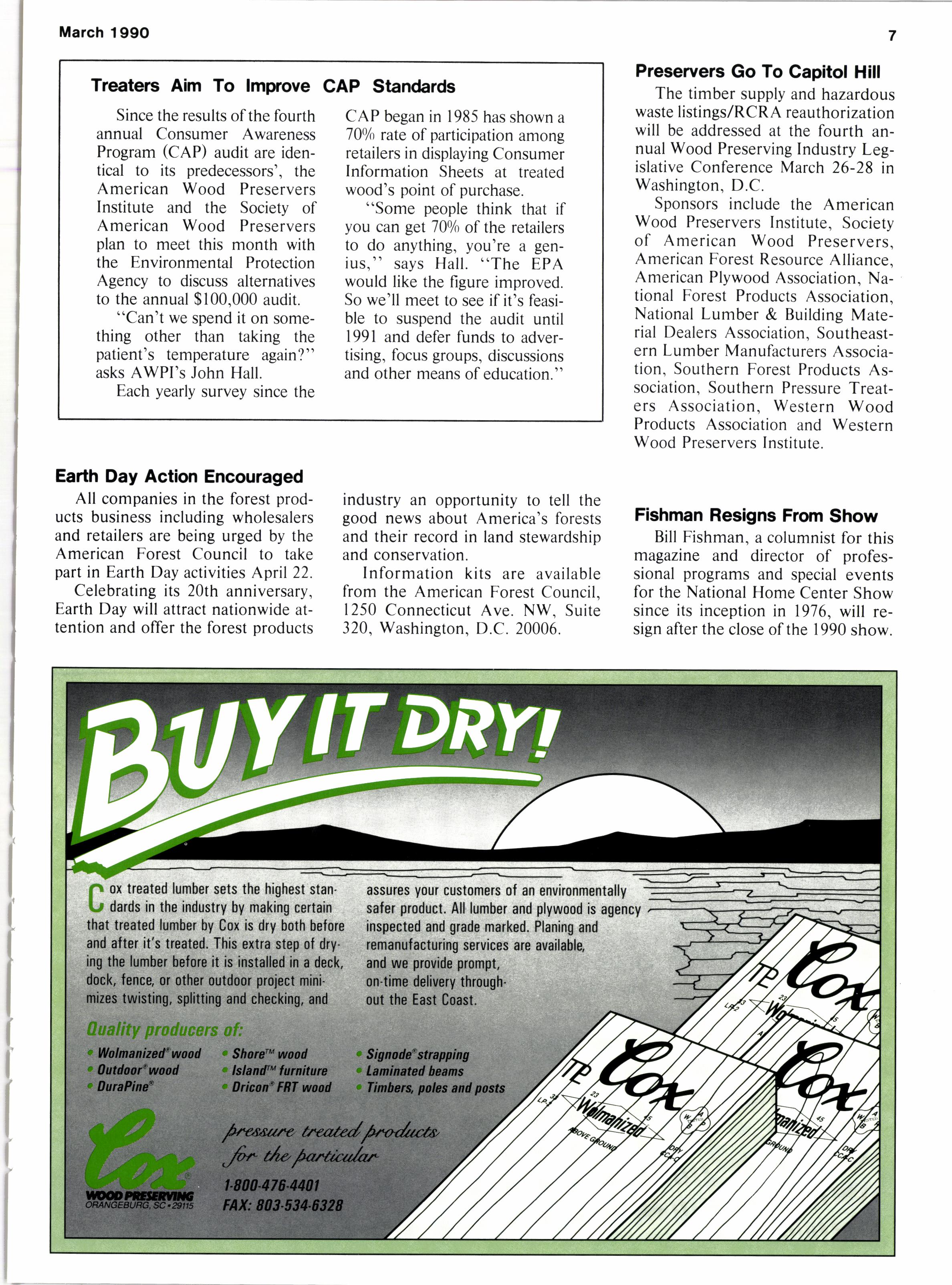 CAP began in 1985 has shown a 700/o rate of participation among retailers in displaying Consumer Information Sheets at treated wood's point of purchase.