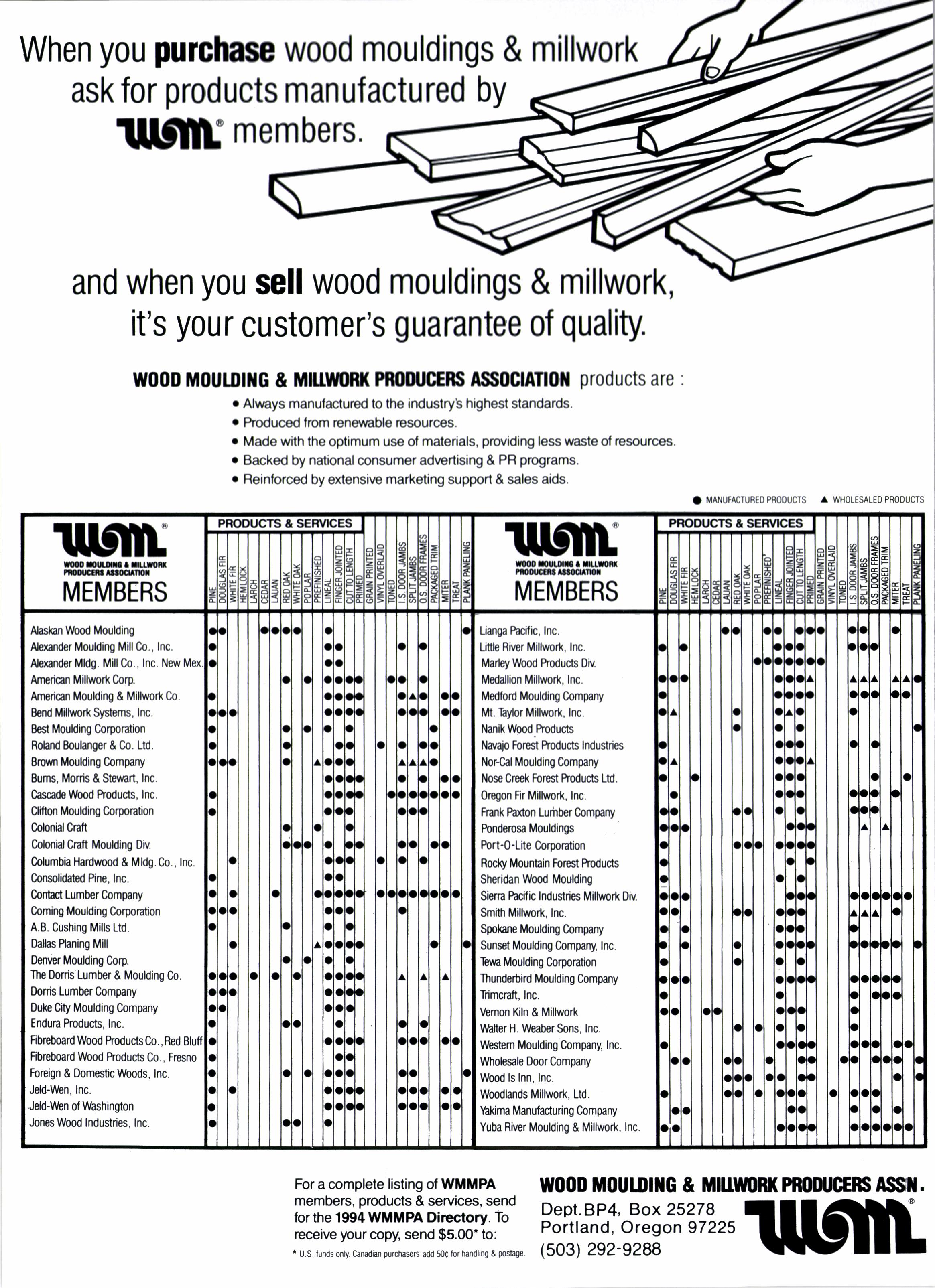 Actually, years ago millwork was the bread and butter of many southern pine producers. The swirch to structural lumber came during the post World War II housing boom. Faced with rising demand for franing materials and rising production of affordable ponderosa pine millwork by western mills, southern pine produc-