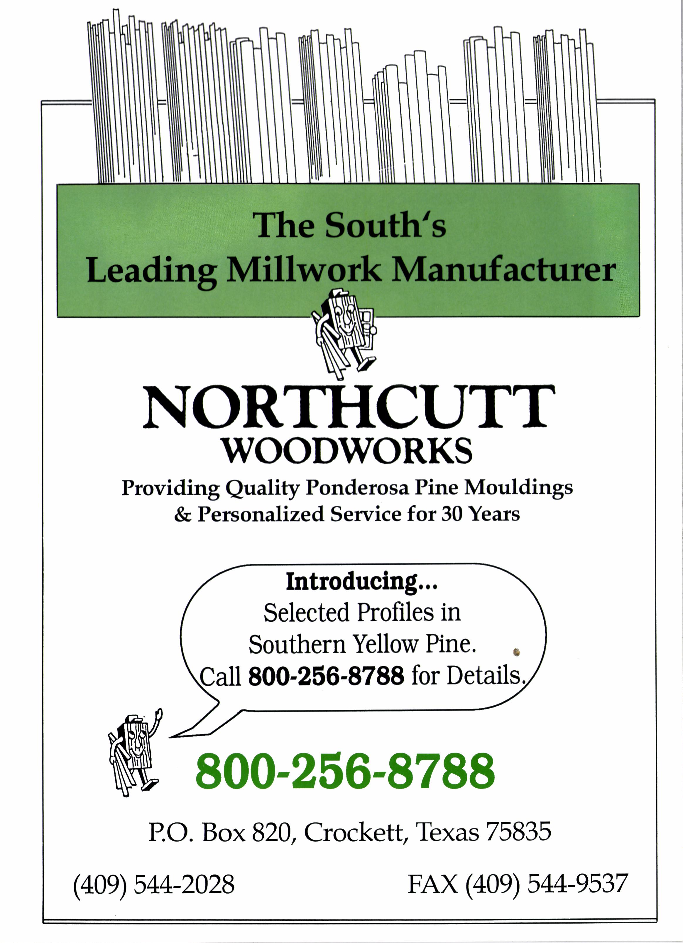"I'm 50 yean old and it's the hardest sell I've ever had," admits Eddie "E.2." Hunt, Northcur Woodworks, Crockett, Tx. "But in the last four years I've sold 60 to 70 truckloads of southern pine millwork and have not had one complaint. I can't say that about ponderosa pine. Everybody you can talk into'buying (SP millwork) has no problem with it."