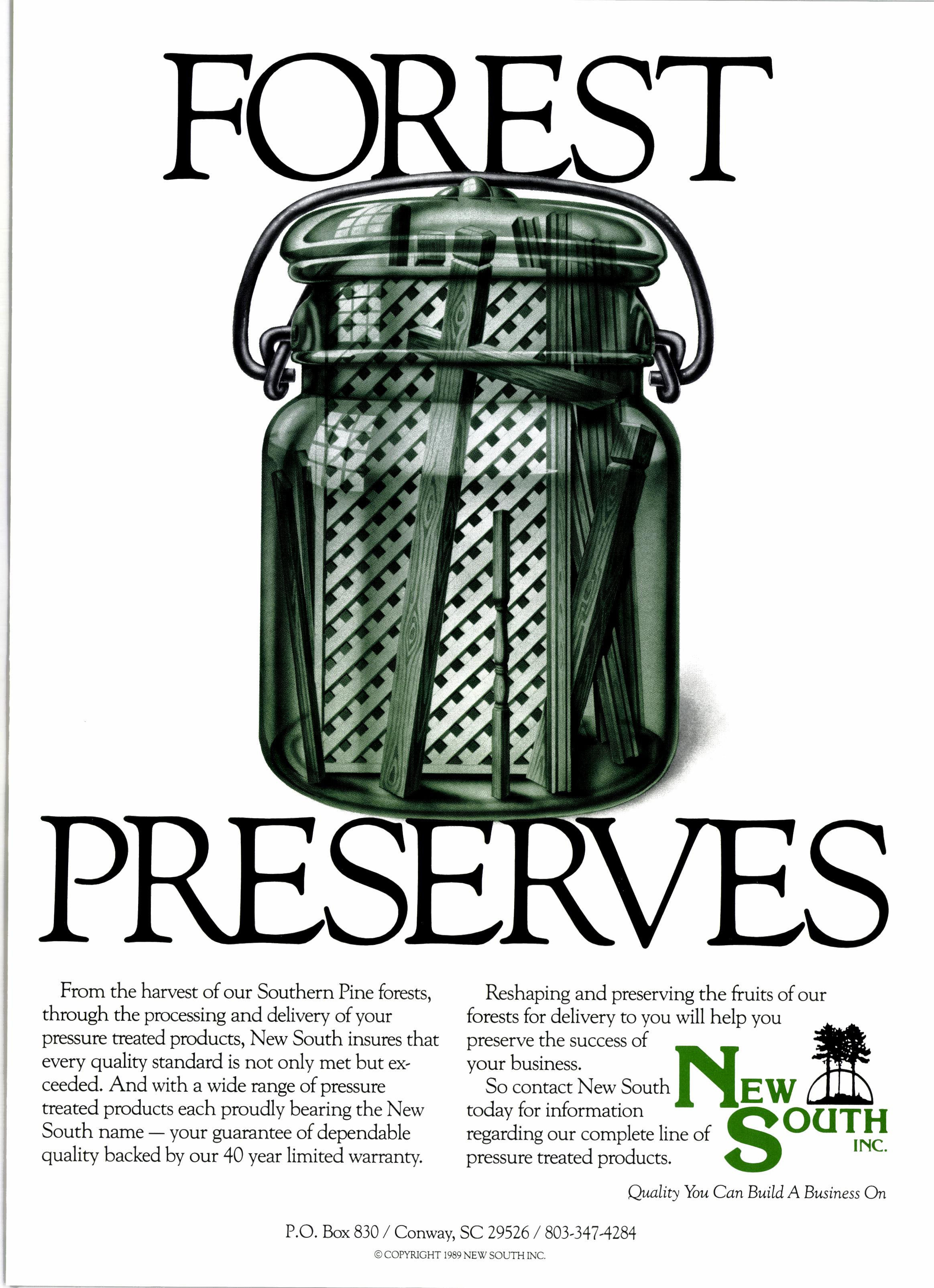 From the harvest of our Southern Pine forests, through the procesing and delivery of your prcssure treated products, New South insures that every qualrty standard is not only met but e><ceeded. And with a wide range of pressure treated products each proudly bearing the New South name - your guarantee of dependable qualiry backed by our 40 year limited warranry.
